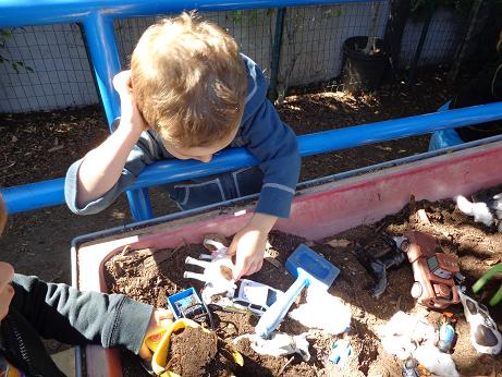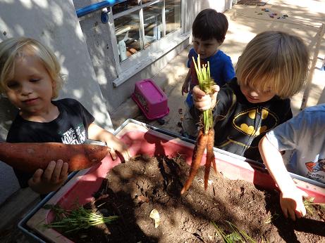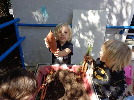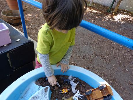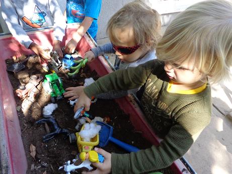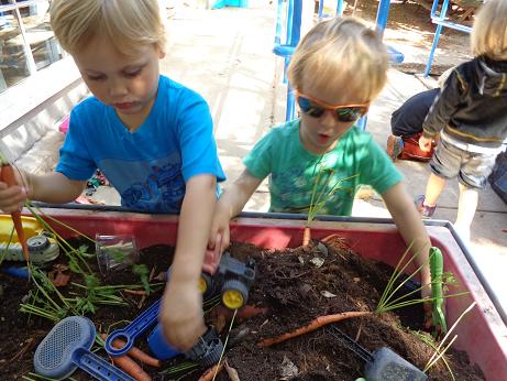 Using soil, REAL vegetables, a toy oven, tractors, and a variety of “farming” equipment, your little one was encouraged to grow and harvest their own vegetables! As their vegetables matured, they incorporated them into a hearty stew. My objective in this activity was to link the role of the farmer to what we put on our plates at home, and the exhaustive process it requires to make that possible!