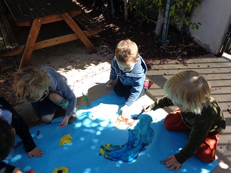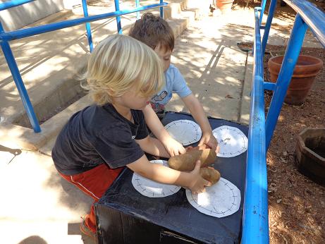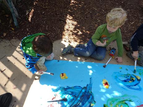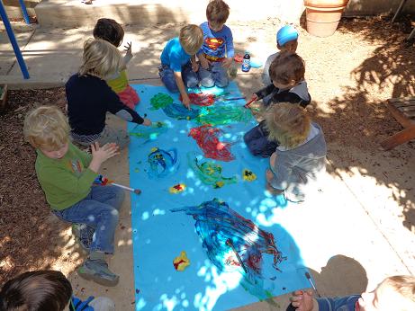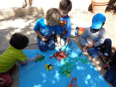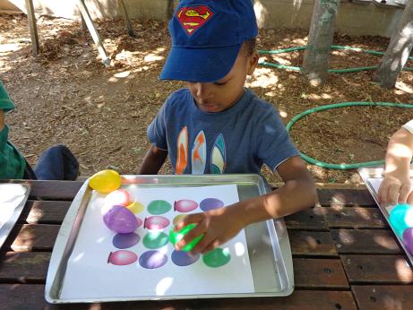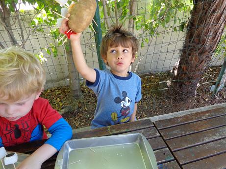 Children acquire language as they develop, but they have been using their senses from day one. Hearing, touching, tasting and smelling enable them to receive and utilize new information. By providing them with meaningful experiences, they gather language tools that support the cognitive concepts specific to the experience. Using pudding, paint brushes, and food coloring, we created our very own dairy masterpiece! Your budding artists mixed colors (recognizing how they change), manipulated the texture of the pudding, created shapes, and enjoyed sharing their discoveries with their peers!