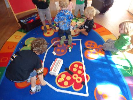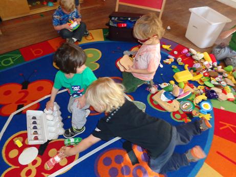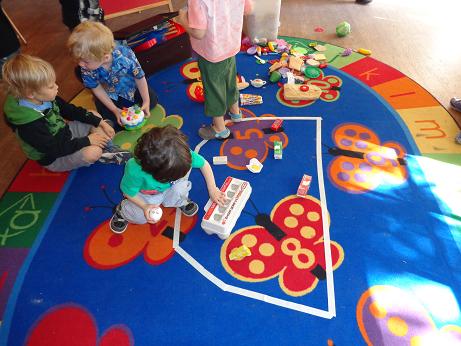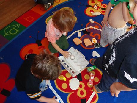 Our favorite dairy products undergo an extensive process to reach our tables. Each stage of development is complex, requiring a series of lengthy procedures designed to make milk safe for human consumption. Using pictures, puppets, and a silly song, your budding farmer learned about the many stages of milk production. Following this circle time introduction, each student was given tractors, cows, cotton (to simulate milk), farmers, and their imaginations, to apply their understanding of this new information! This activity was significant to our curriculum, because it supplied us with a greater understanding of the origins of our food, those who serve our communities, and the connection between them!