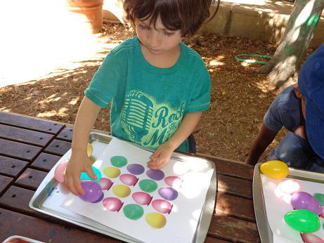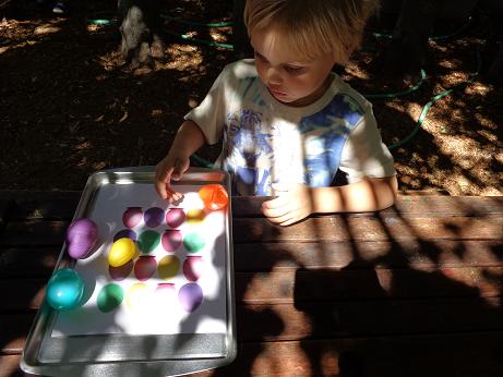 Patterns present themselves to us in several ways; through the repeated images on wallpaper to the lyrics of our favorite songs. Understanding these patterns will influence your little ones’ future mathematical endeavors, because understanding numbers requires an understanding of how things work together. Using plastic eggs and colorful pictures, we practiced our own color and pattern recognition skills!