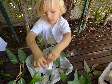 The rainforest is composed of four different layers. Together, these layers provide a rich dwelling place for the creatures that live there. Using clay, sticks, and leaves, we created our own version of the canopy layer. This activity enabled your little one to gain an understanding of the physical characteristics of this lush environment.