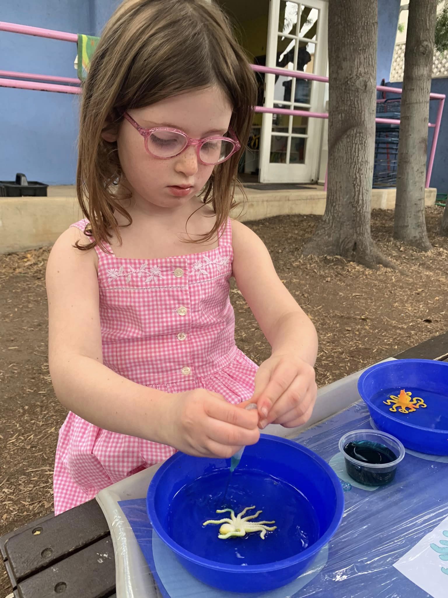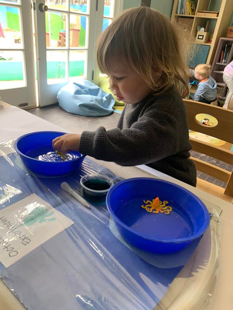 This activity helped your little one formulate their own predictions about what might happen when ink is added to the water, and then compare and contrast their results as they completed the experiment.