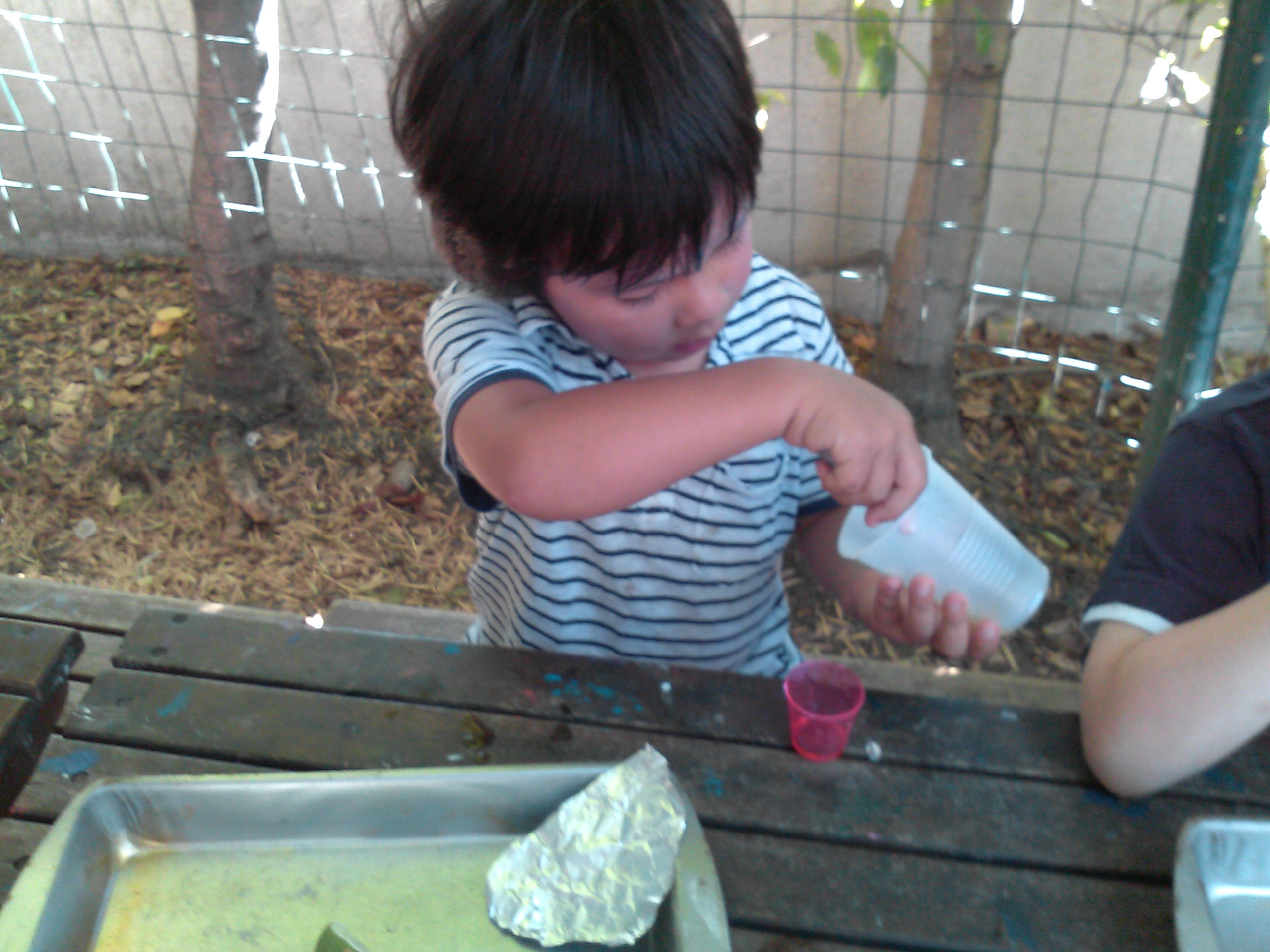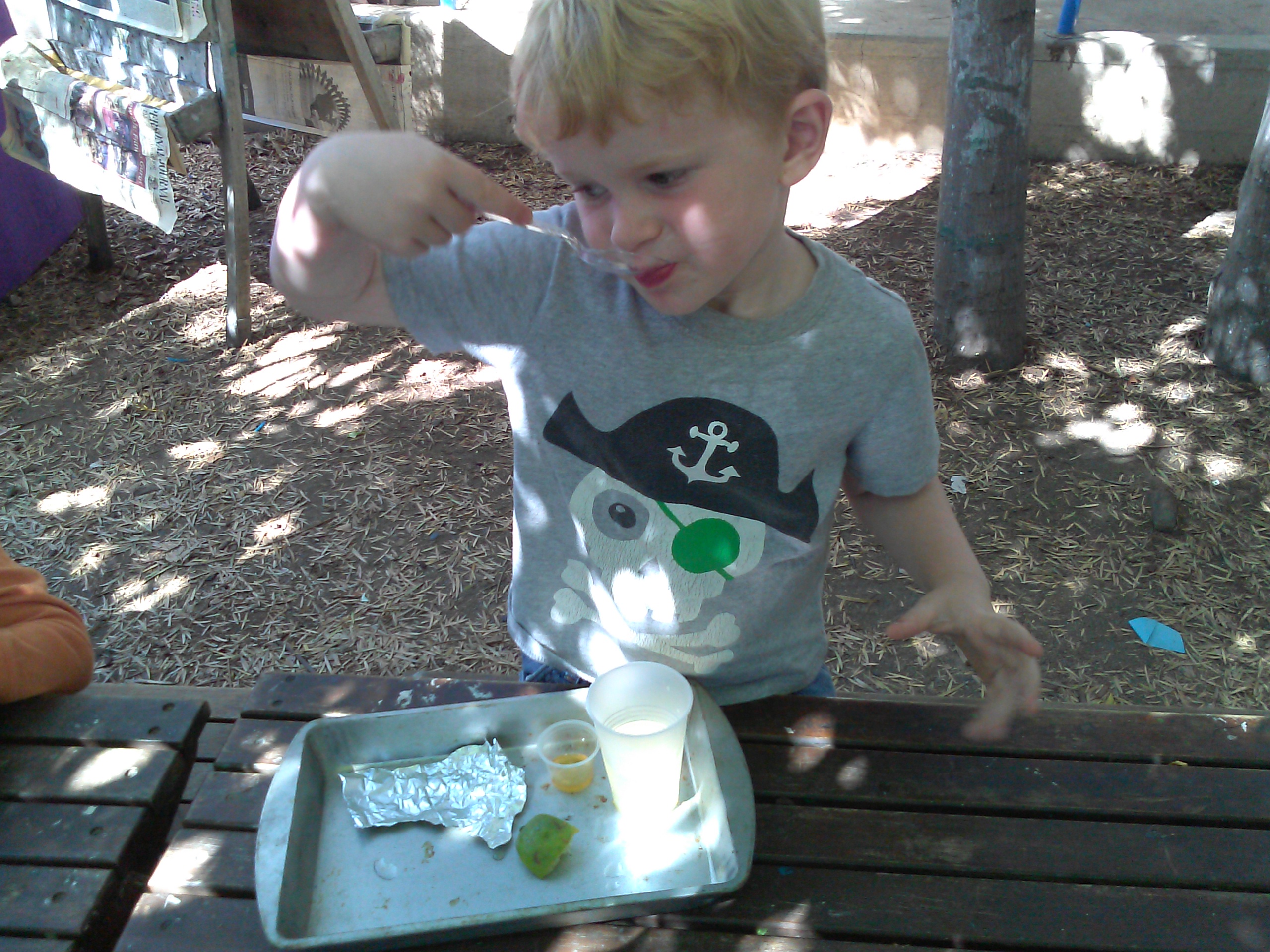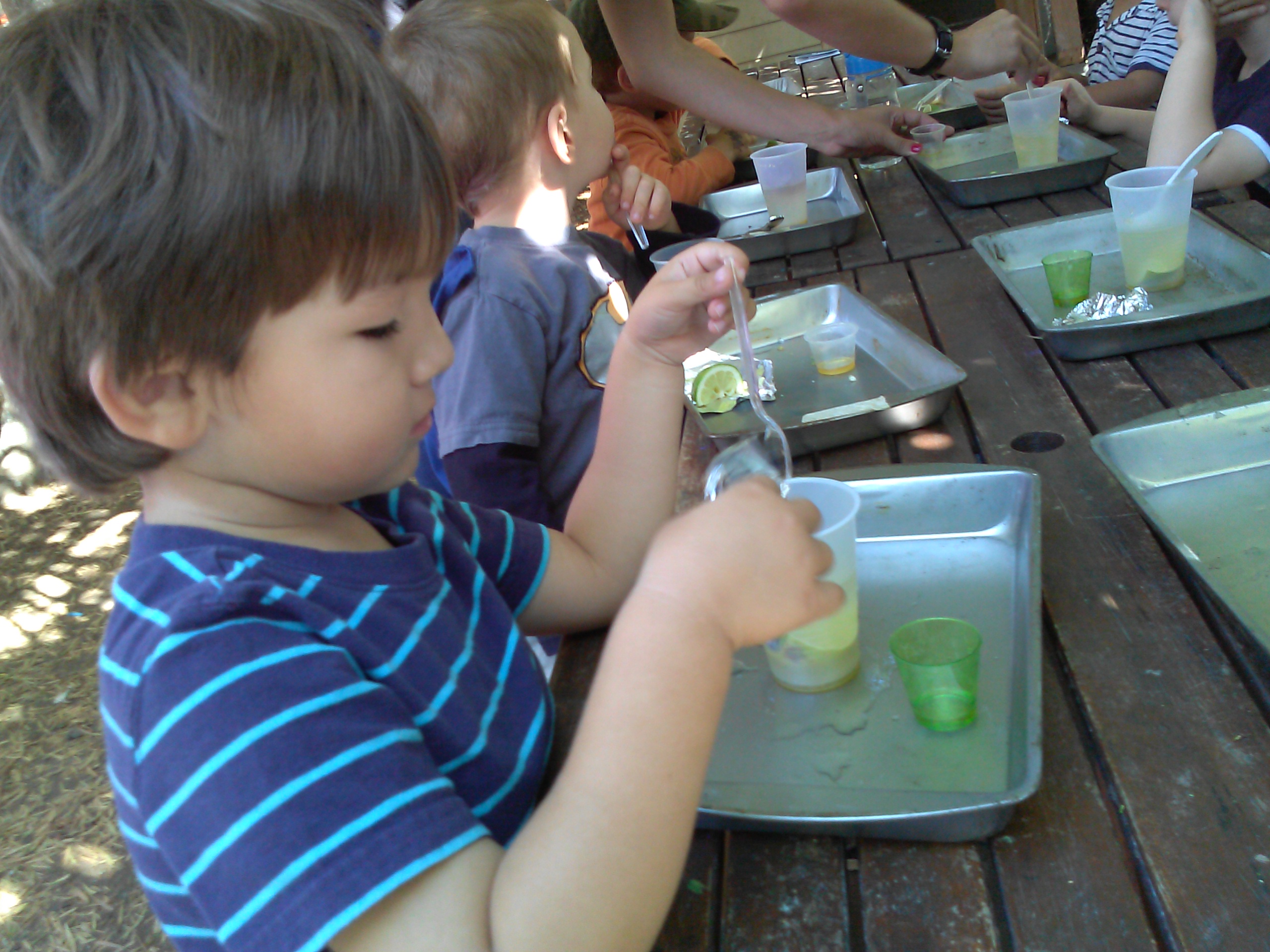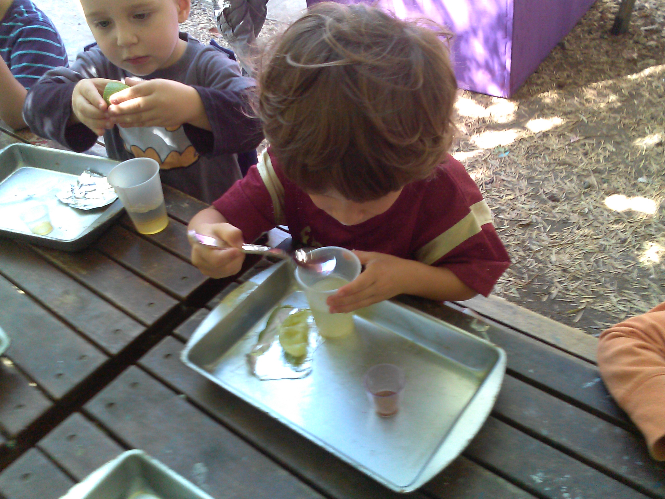 The people of the medieval ages did not enjoy water as we do today. Most citizens received their water from wells and other communal sources. This water was almost always tainted with bacteria, caused by human waste and poor sanitation. To compensate, people would add alcohol, honey, and other fruits to the water to make it “cleaner” for consumption. Using honey, limes, and water, we created our own version of mead. Before we began this activity, we discussed what germs were and how important it is to exercise proper hygiene. Your budding historian also learned about why medieval water was so dirty, and how they can ensure cleanliness in their own lives. When young children are active in creating their learning experiences, they foster meaningful connections between new information and their understanding of it. This is an important component in the capacity to problem solve. As they add and manipulate levels of ingredients, they amplify their ability to think creatively, as they create new and unique combinations of ideas and materials.