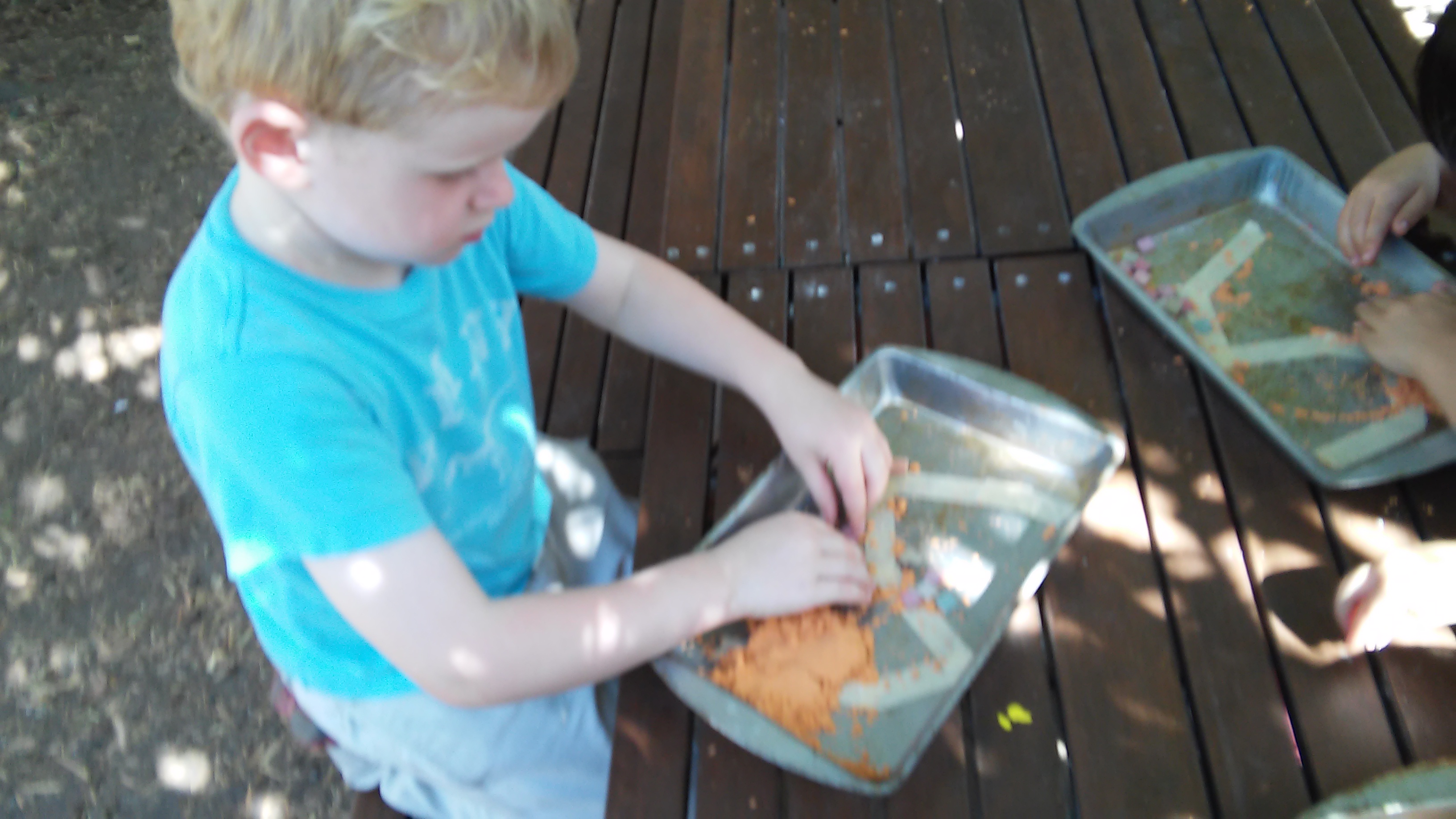 Our first project consisted of lacing cards and perler beads, and the second contained a combination of rocks and chalk.