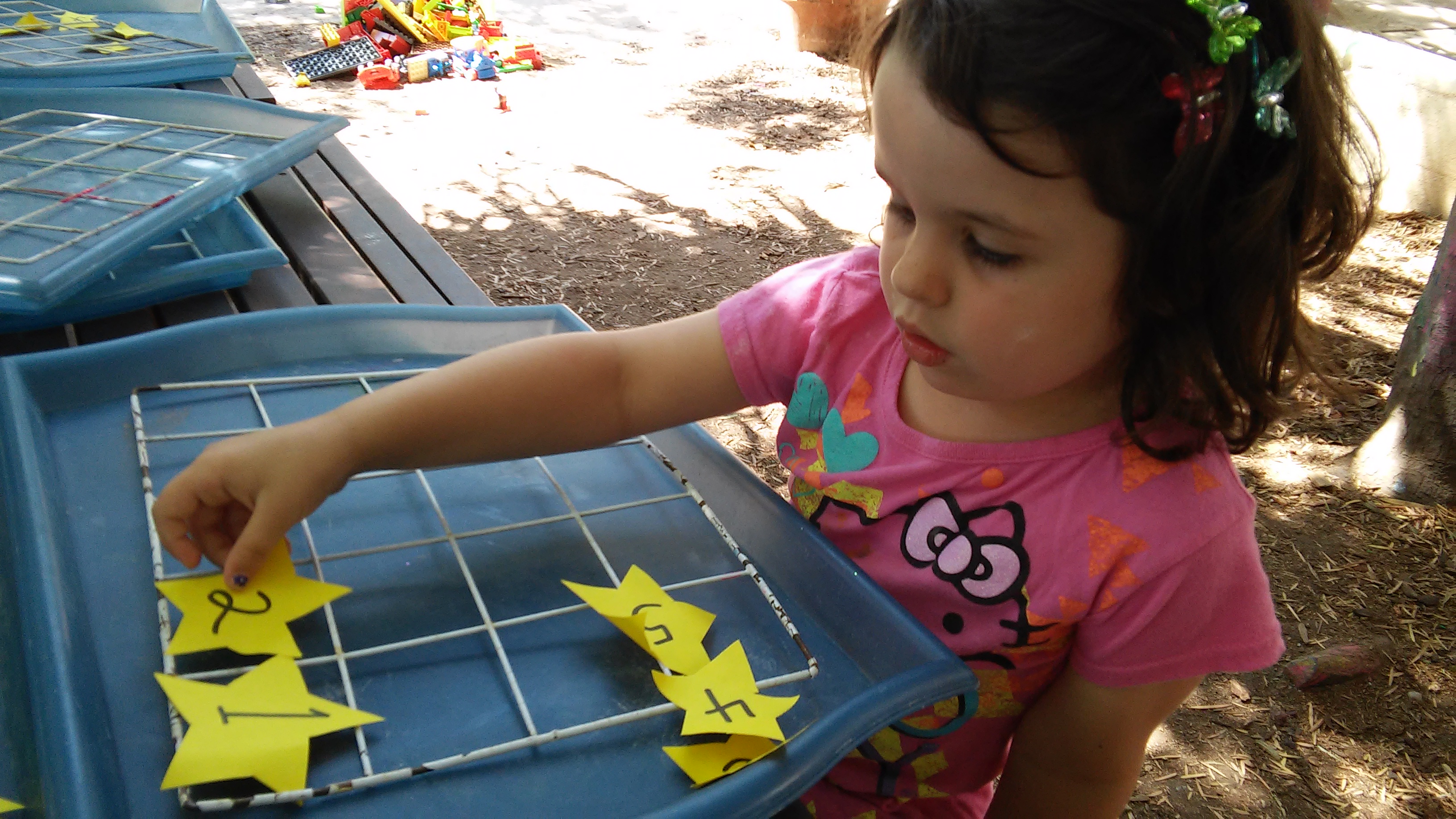 Grid games teach one to one correspondence, counting, and numeral identification to the preschool learner. To play this grid game, students rolled a game die, identified the numeral, and counted out that amount of manipulatives.