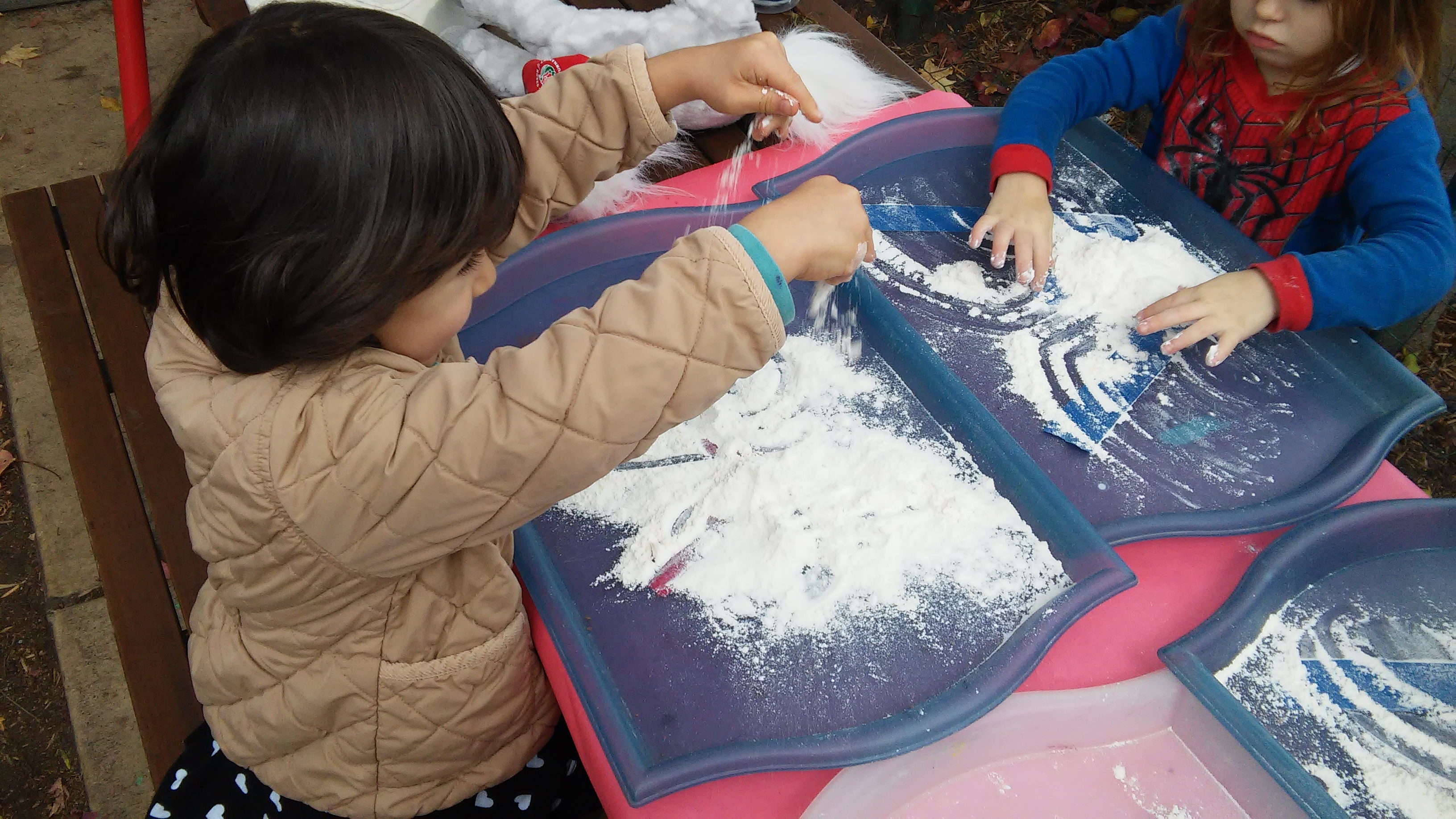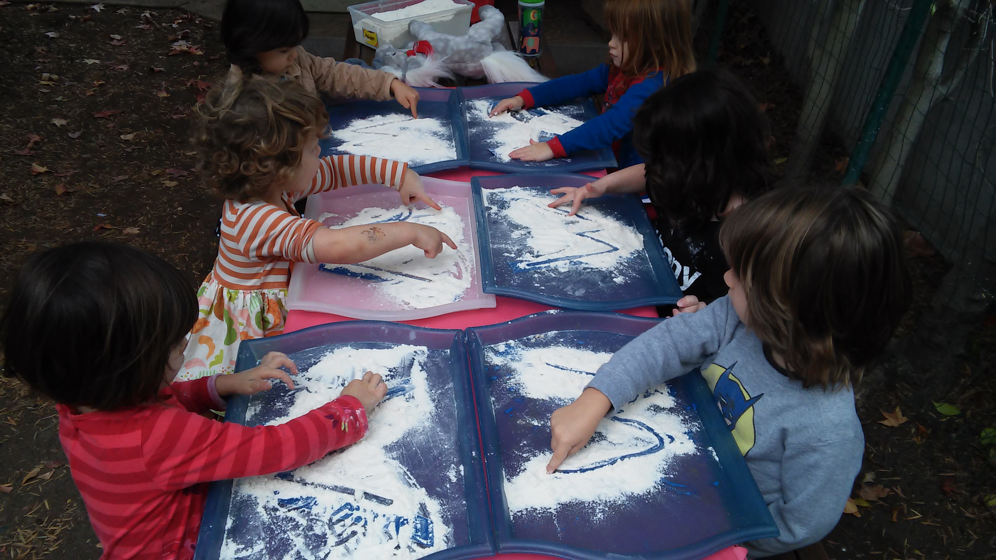 For this activity, we practiced tracing the letter W with flour! Your child was directed to trace the letter W into the flour. Doing so helped your child develop stronger familiarity with the structure of W, integrating the sense of touch to create a visual representation of the letter.