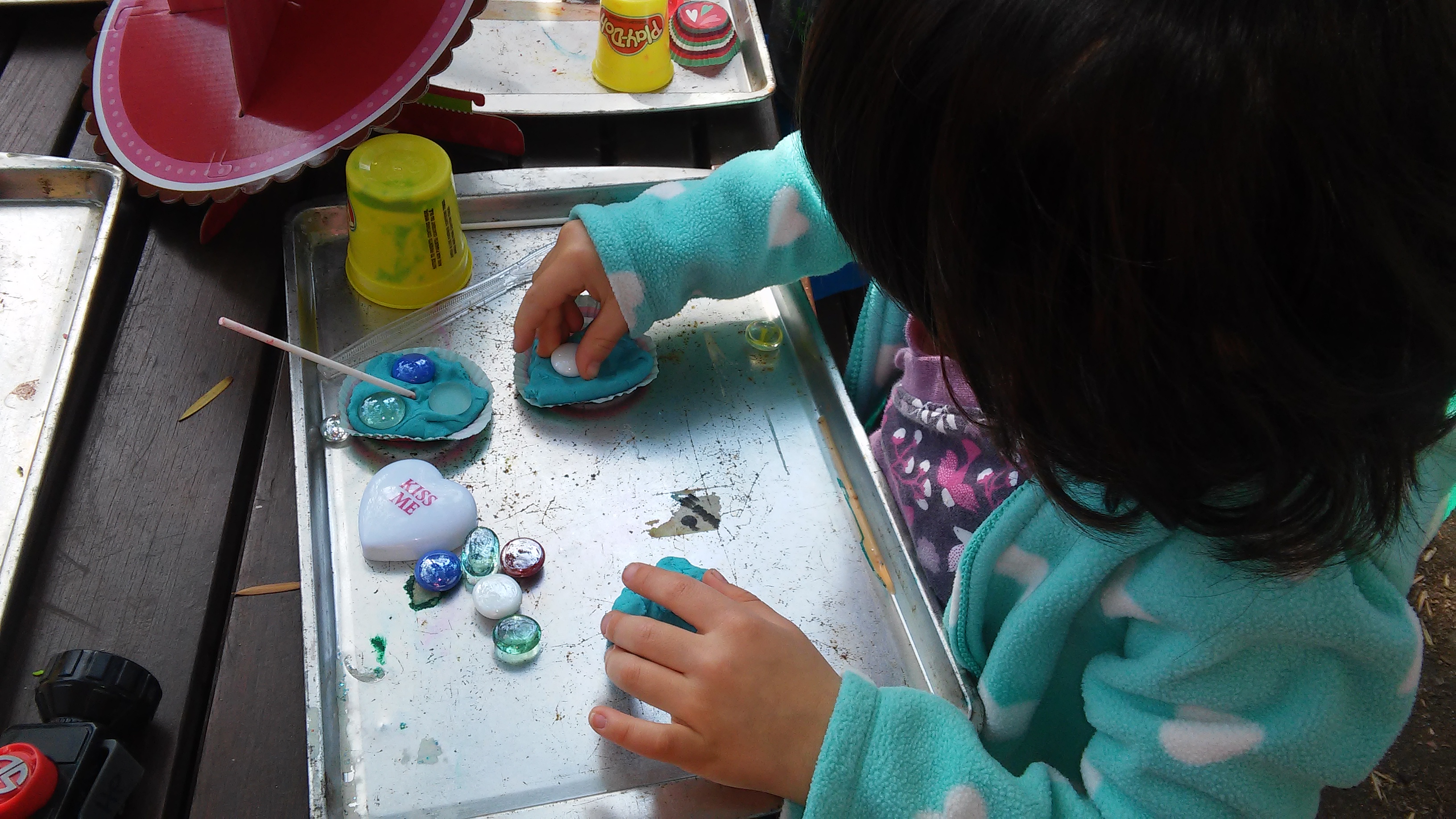 For this particular activity, we used playdough to create a variety of Valentines-themed baked goods.