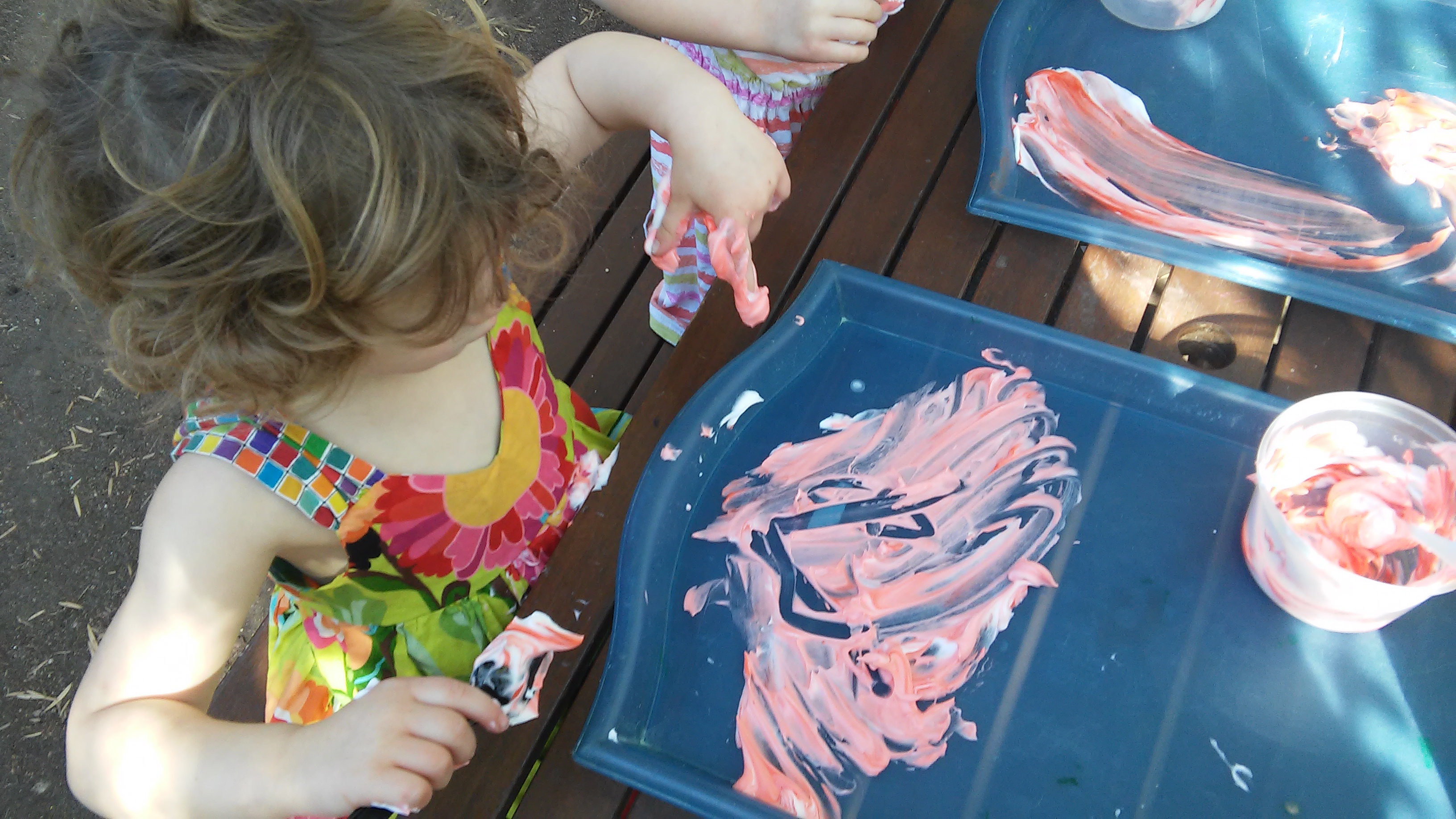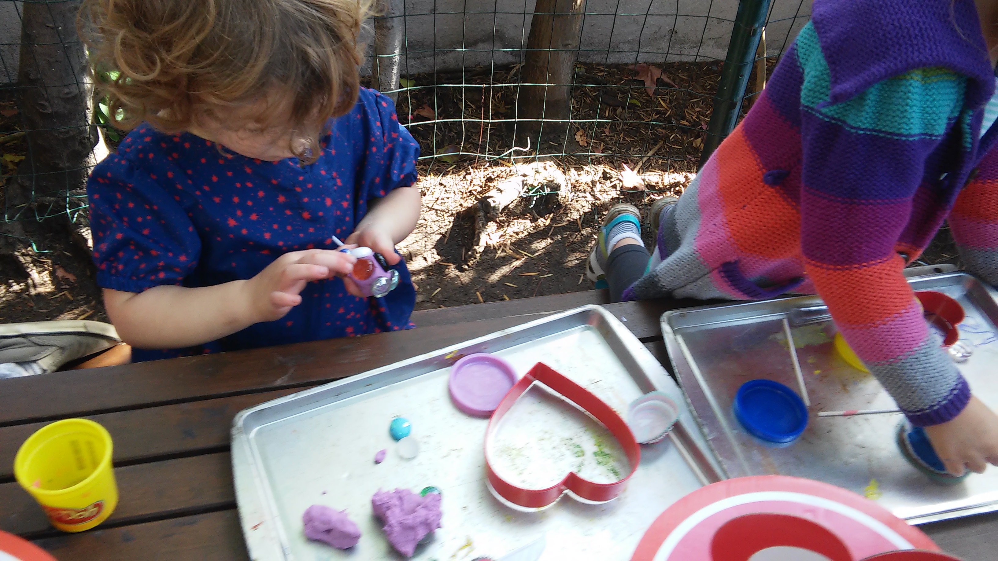 The tactile experience of manipulating playdough helps children develop a deeper understanding of how matter changes (physics) and encourages them to use scientific thinking as they observe changes, make predictions, and talk through differences in the materials they are using.