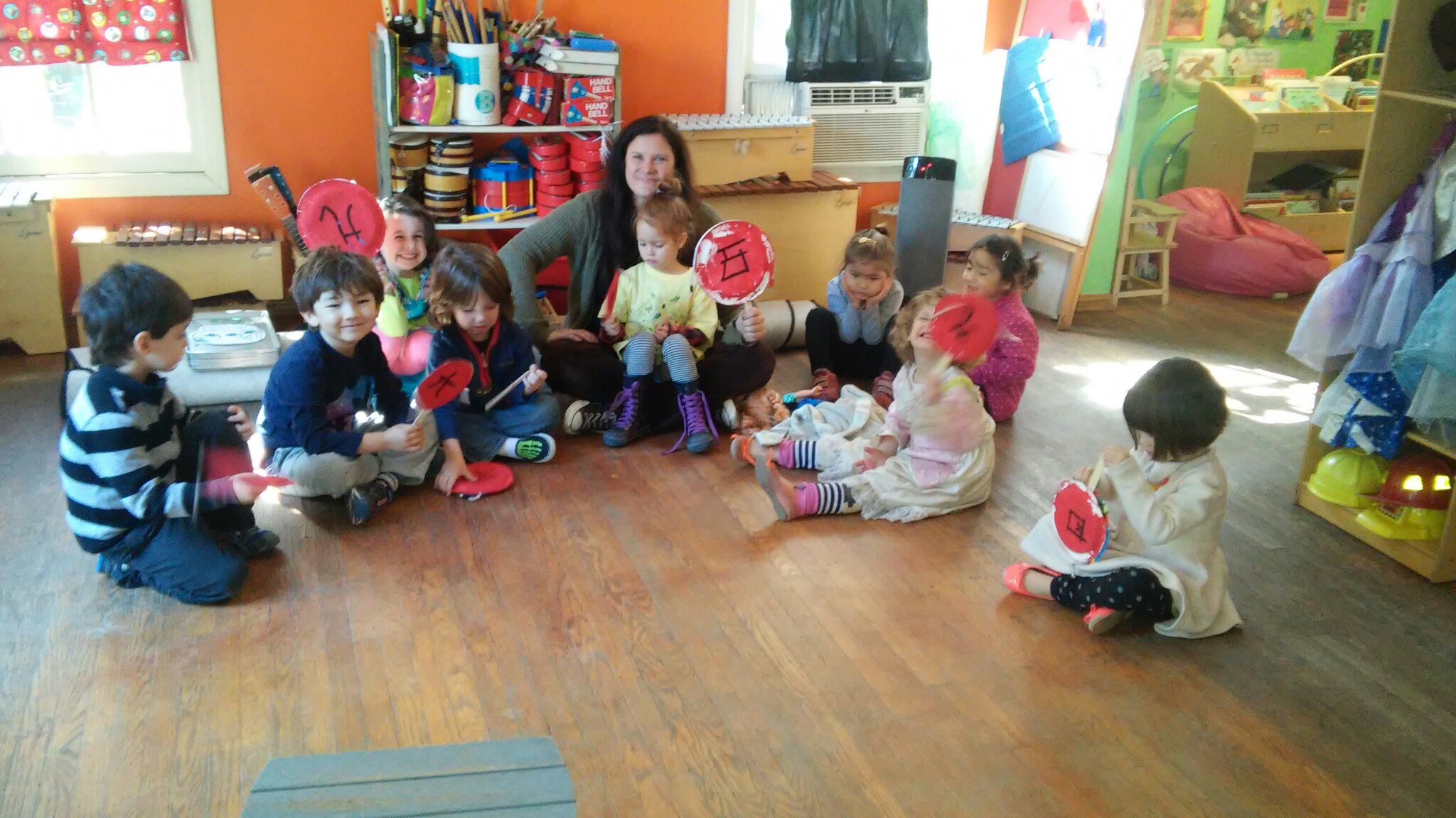 For this activity, we painted red paper plates and attached beads to them to create the rattle drum. During circle time, we pretended to be peddlers crying their wares, shouting in cadenced voices to attract buyers. In China, the rhythmic sounds of a rattle-drum are easy to draw attention. This drum is not only practical to Chinese peddlers, but is invariably recreational and creates a happy, relaxed and fun atmosphere when it is shaken to drum up.