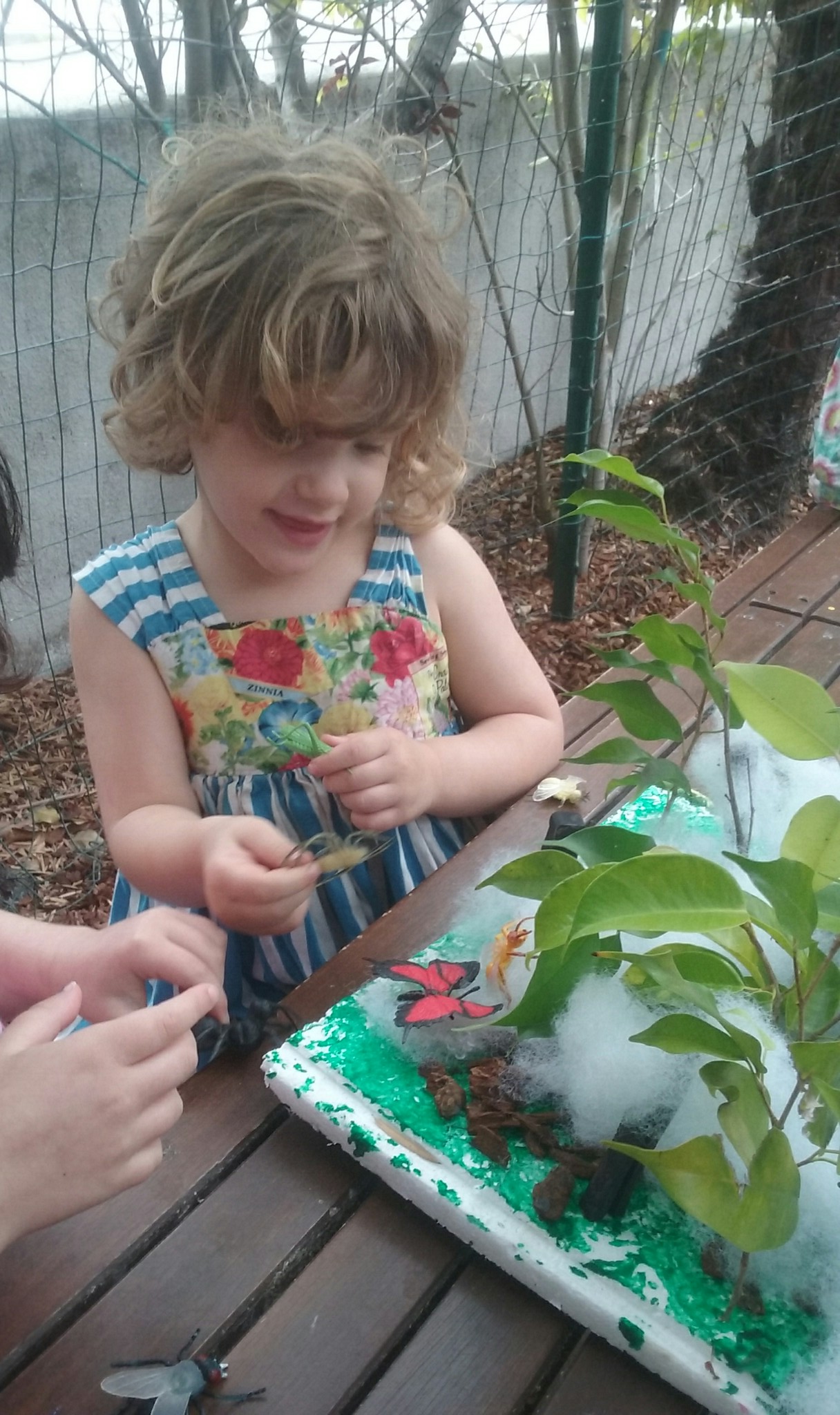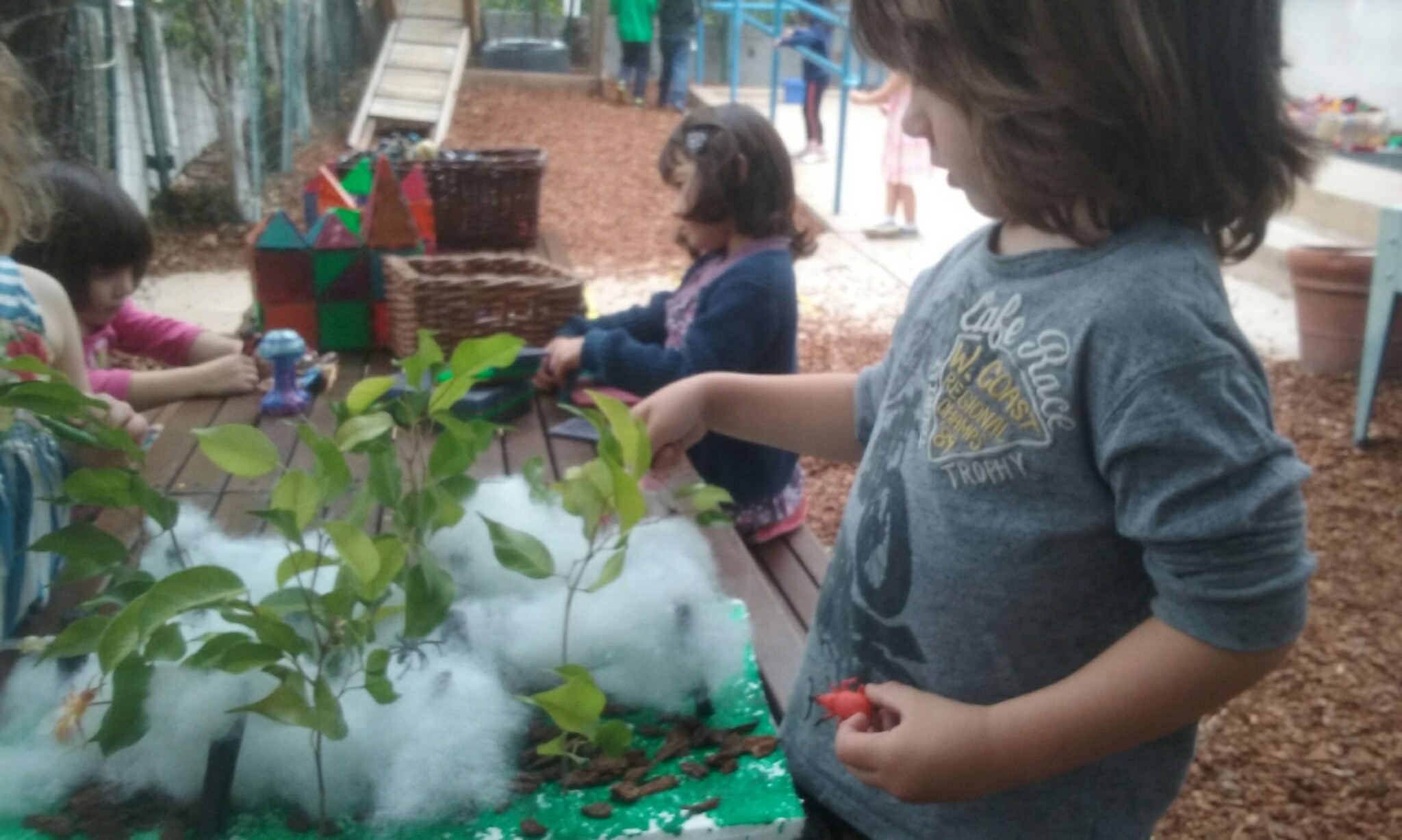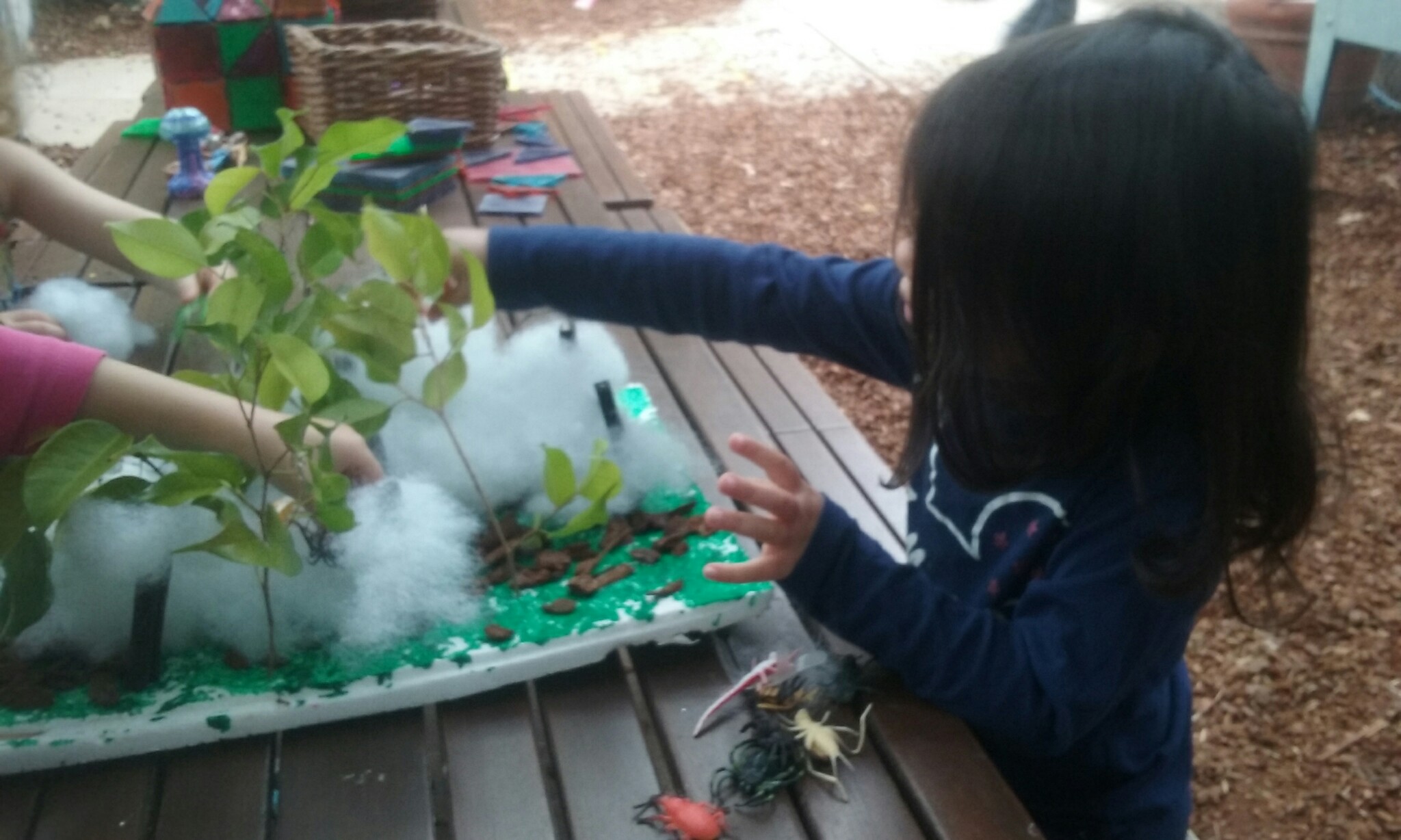 Using string, sticks and play dough, we created our own webs, and then your little ones attached spiders to a web that Miss Carrie made using string and a hula hoop!