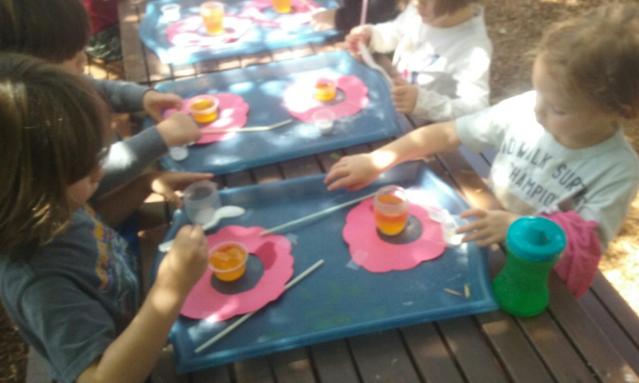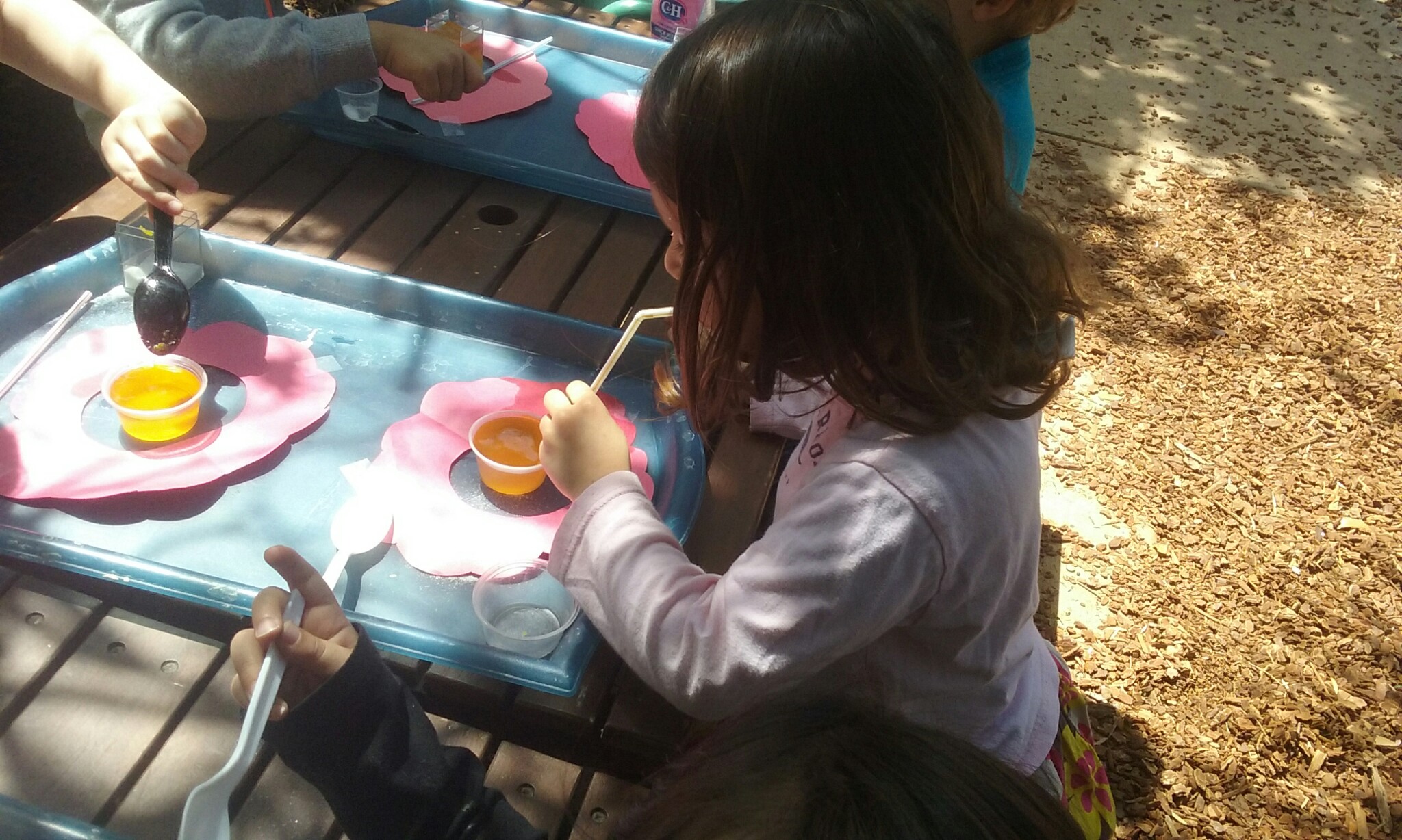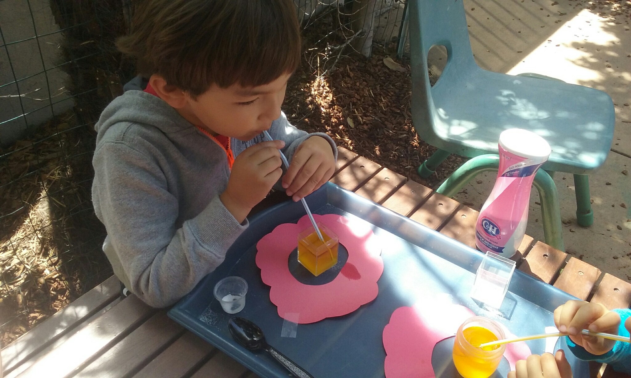 To help you little one understand how this works, we created our very own nectar with sugar and water.