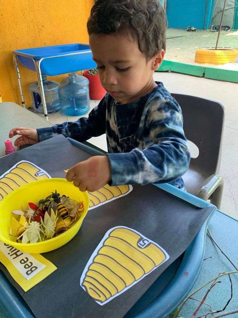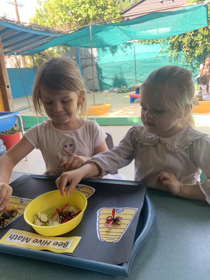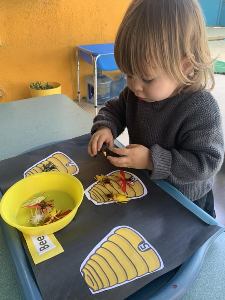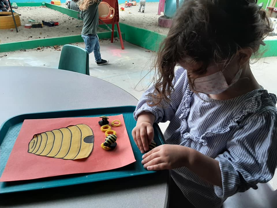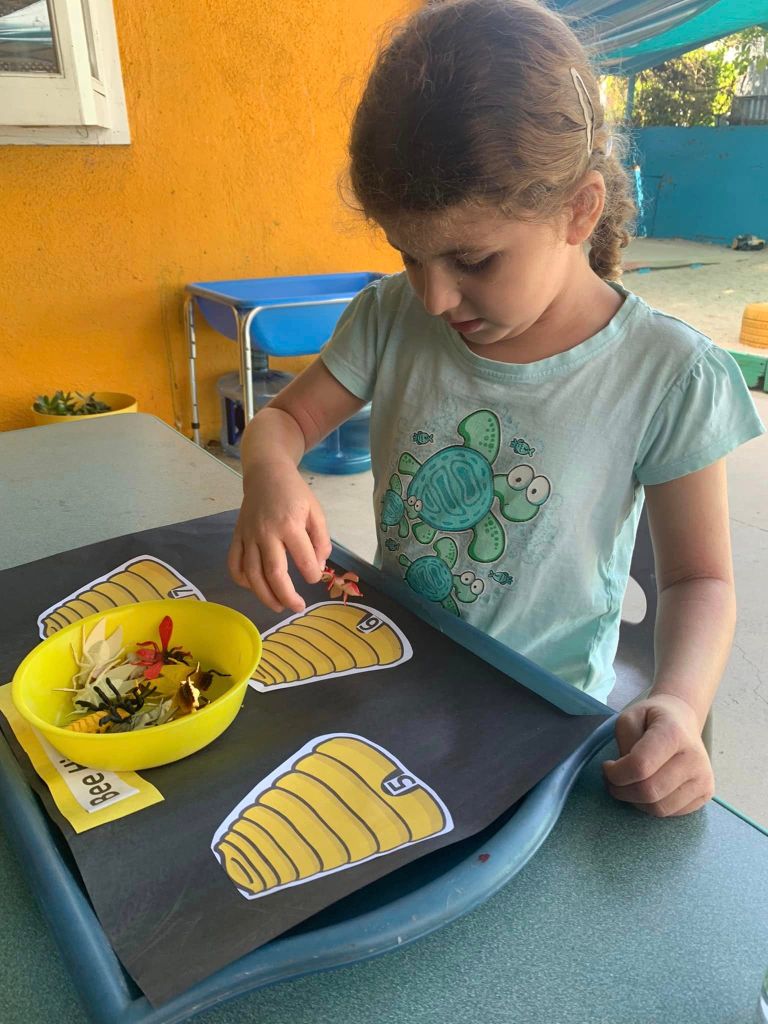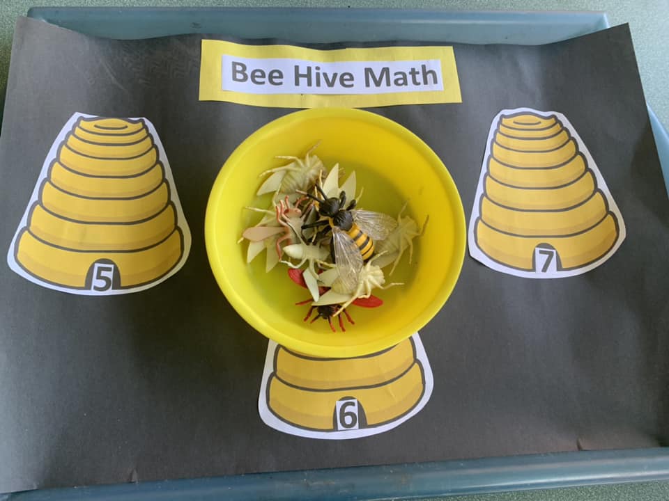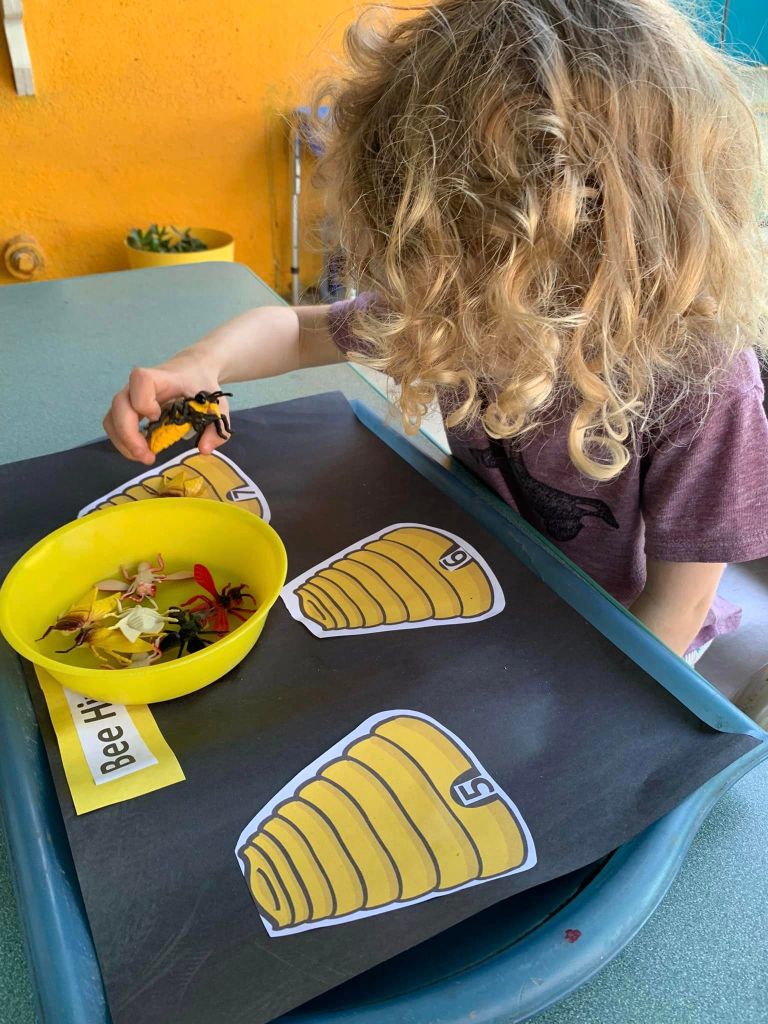 While enjoying this activity, students placed toy figure bees onto three beehives with varying quantities. This was a fun way for your children to work on their fine motor skills.