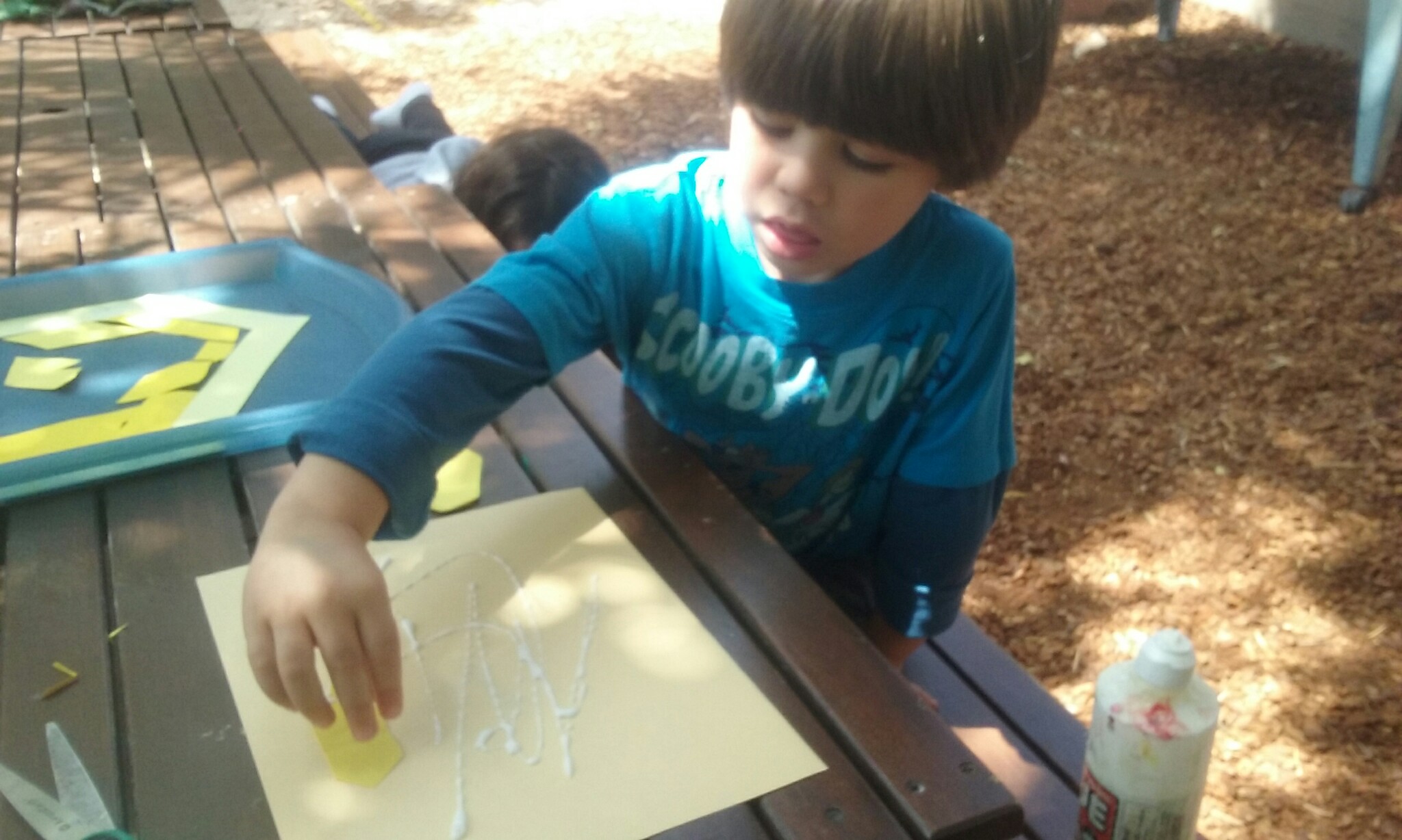 We then used paper hexagons to create our own beehives. An awareness of shapes and spatial sense will help your child get ready to learn about geometry.