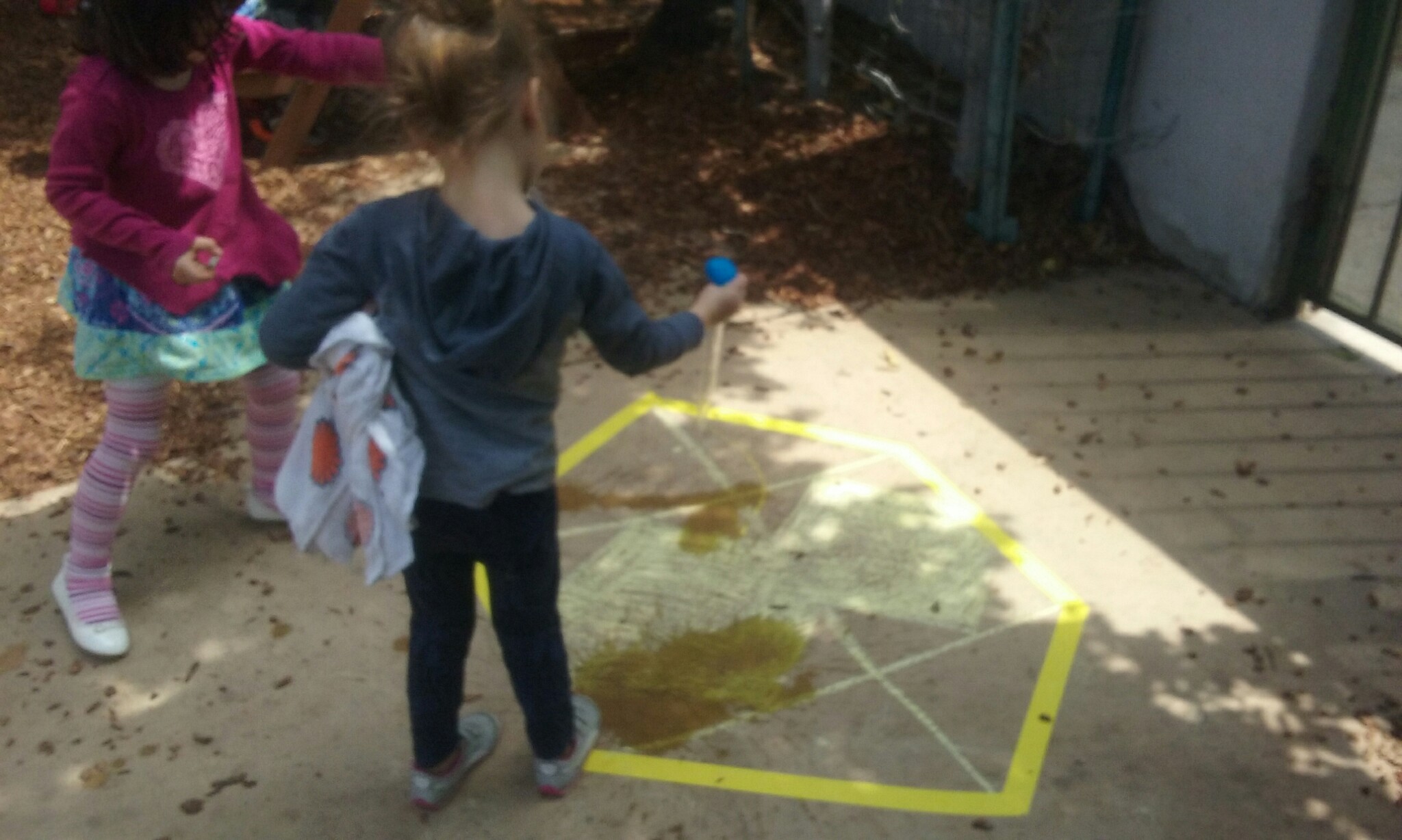 This activity incorporated several developmental tasks. It enabled your little one to formulate ideas based on quantity and space. It also helped your little ones understand how bees obtain pollen from flowers that they take back to their hives. Lastly, by transferring the liquid among the different compartments, your little was given the opportunity to estimate how much should be poured onto our chalk beehive to make the hexagons disappear.