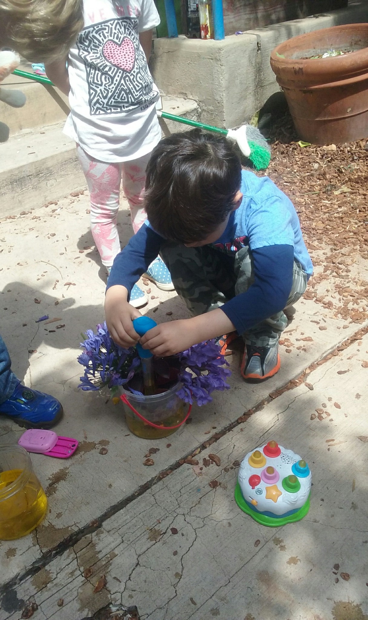She is left with honey on her tongue, which is stored in the hive. To help your little ones understand how this works, we used turkey basters, real flowers, and yellow water to move “nectar” from our “flowers” to a beehive created out of chalk and yellow tape. The purpose of this activity was to suck up the yellow water from the flowers, and use it to make the chalk disappear!
