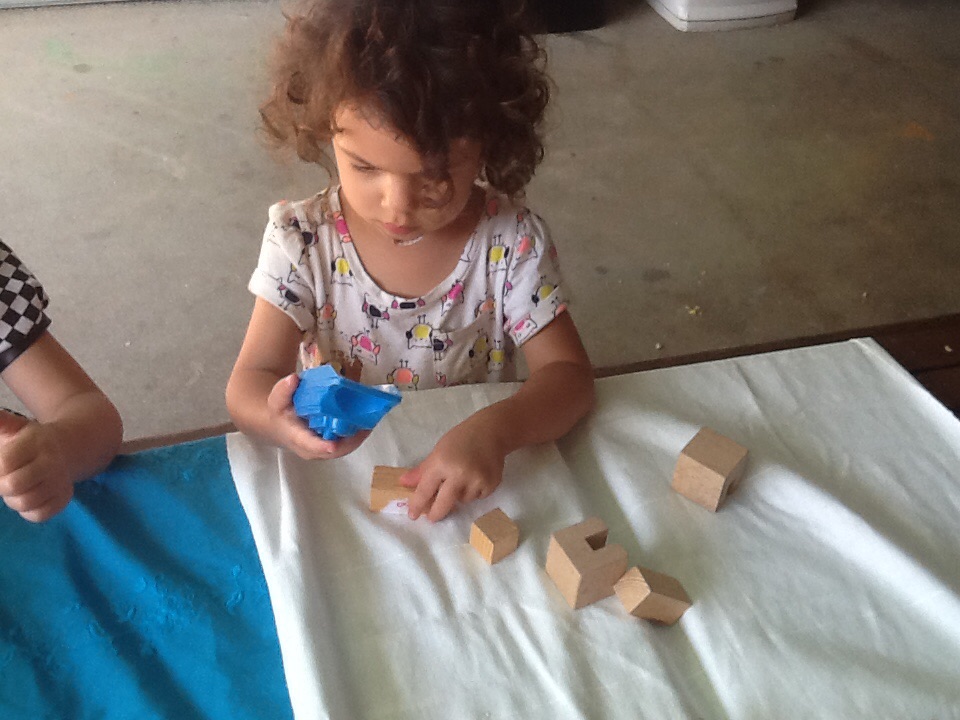 Because we are learning about all things transportation, we built our own docks using blocks as our docks, plastic boats, and blue fabric as our “water”.