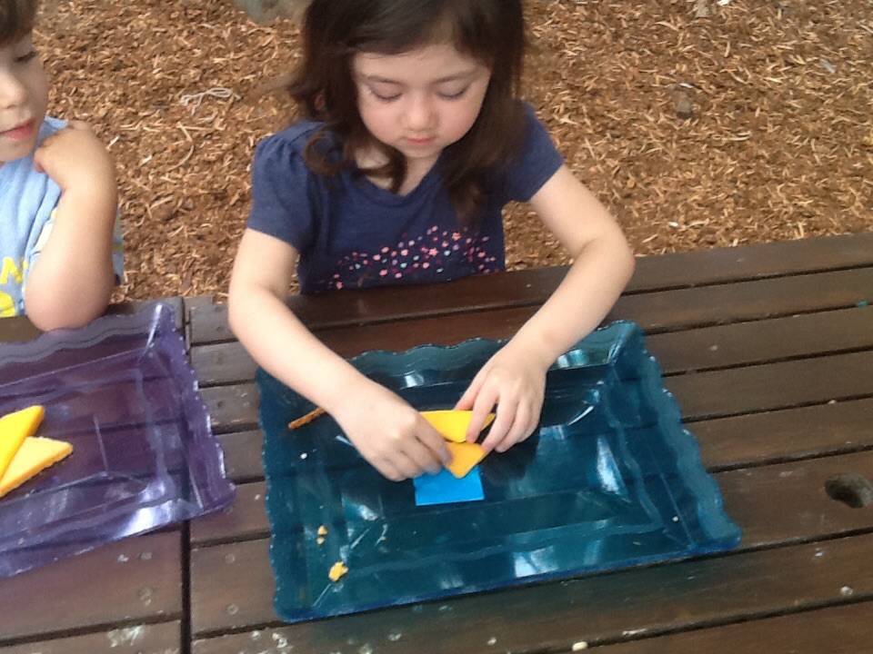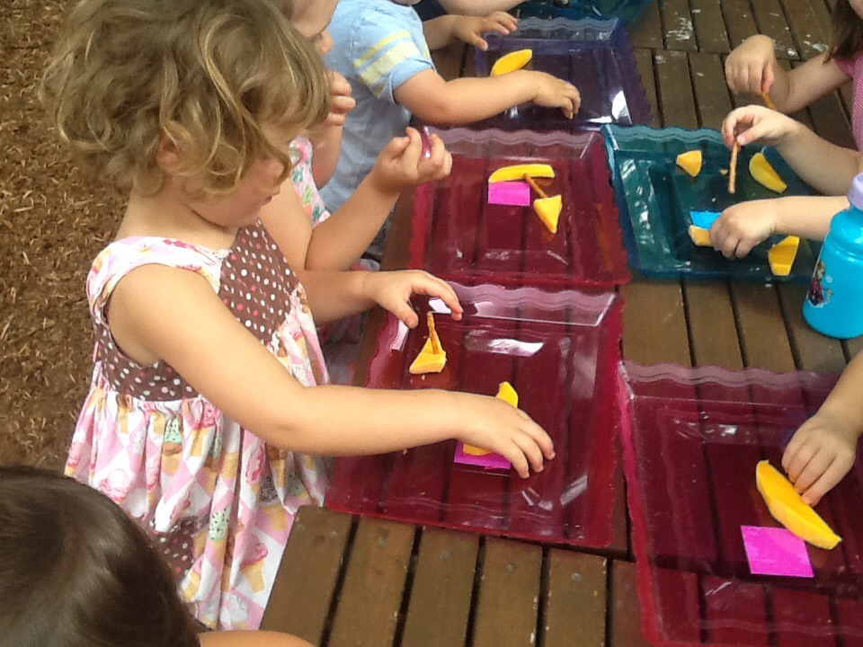 The mango served as the base of the boat, the pretzel was the mast, and the cheese served as a sail! Everyone enjoyed creating and then eating their sailboat snacks!