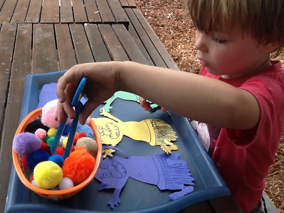 For this activity, we created trolls out of play dough, pipe cleaners, and plastic eyes. It is for one thing for a child to read a book – it is another for them to find creative ways to identify with the characters. Enjoying the tactile benefits of play dough does just this.
