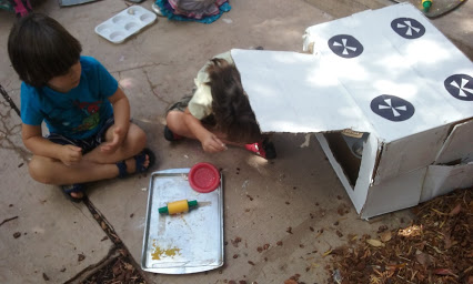 For this activity we made bread with play dough, and used boxes to represent ovens.