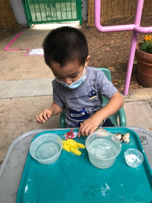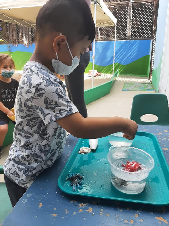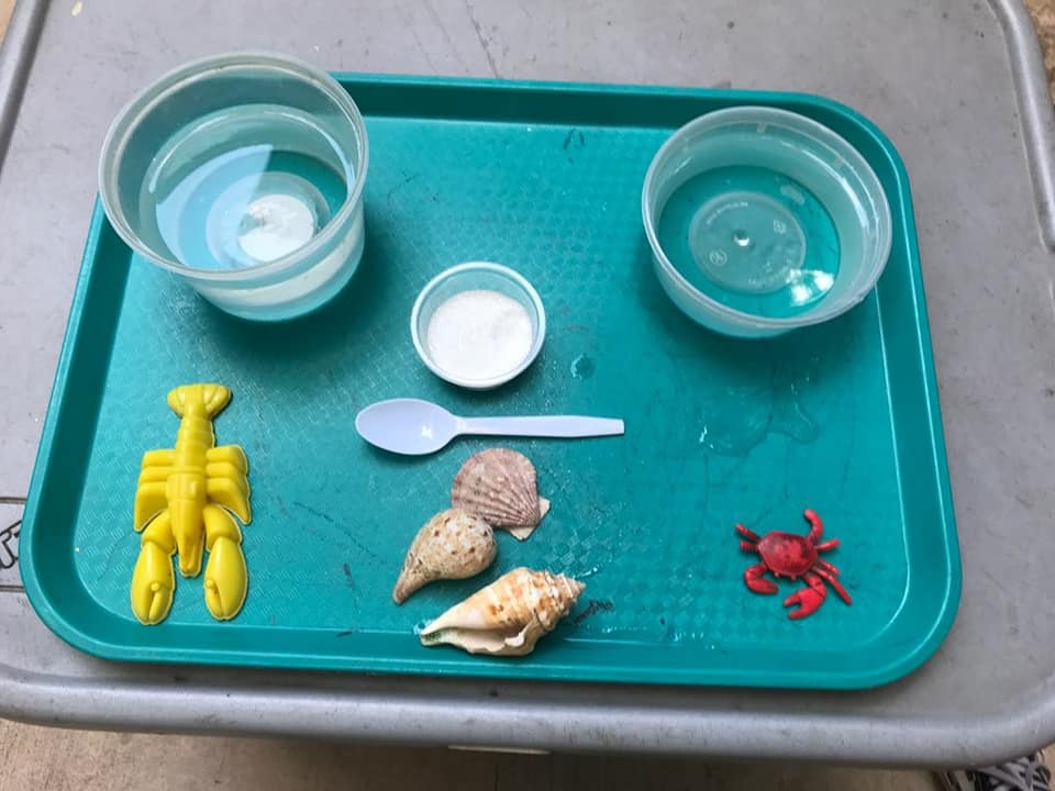 Using real items (in our case crustaceans and sea shells), we placed them in fresh water and then salt water (to incorporate into our Under the Sea theme) and observed whether they would sink or float.