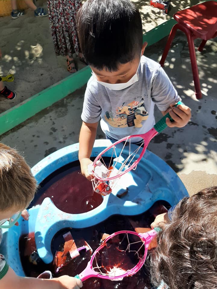 To tie this in with our shark theme, we decided to both create and then “clean up” shark bay. Students were first presented with a sensory table full of “dirty” water and “trash”.
