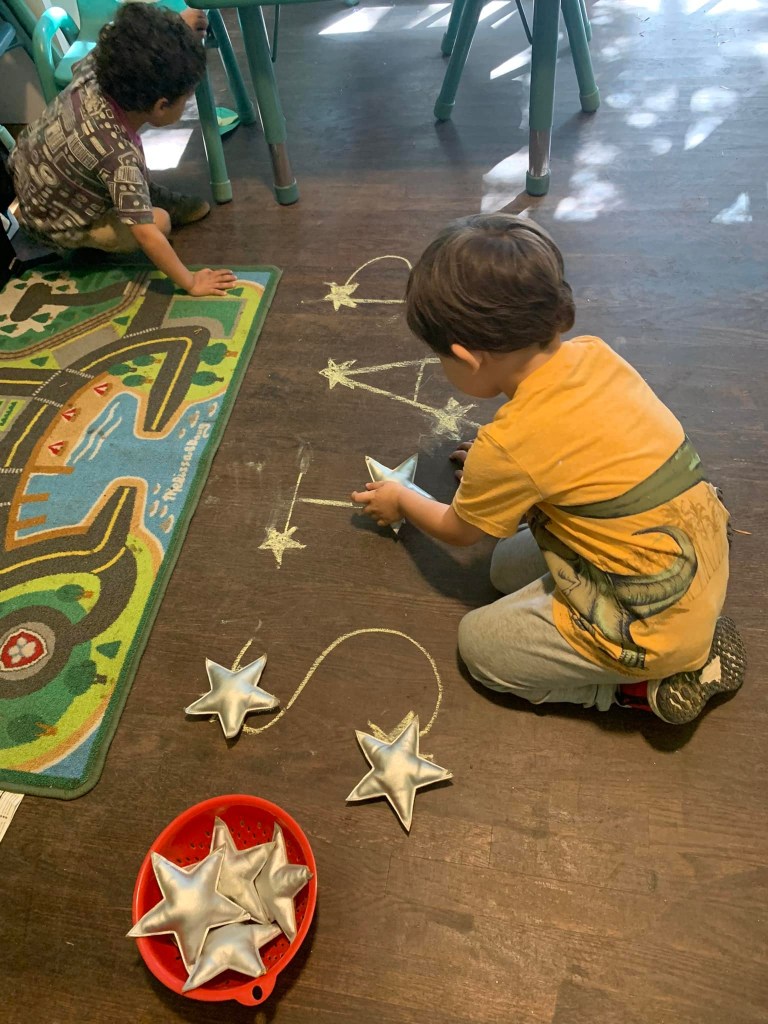 For this activity, students used manipulatives to create the word STAR. They placed the manipulatives onto different points of the letters and then saw the final product!
