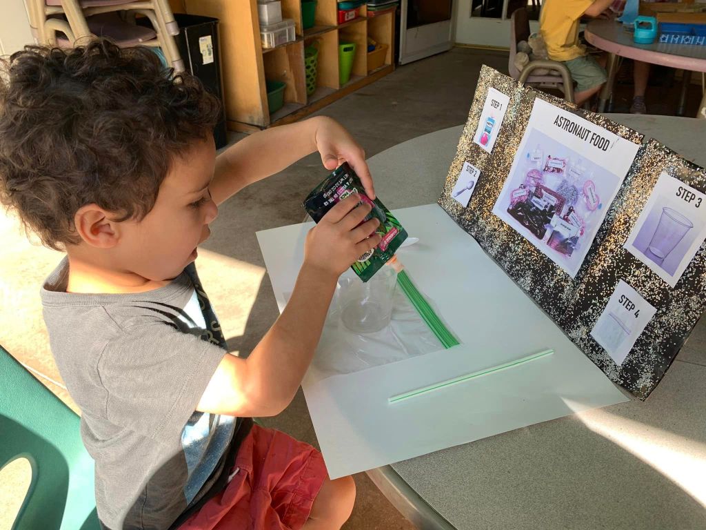 Currently, NASA uses freeze-dried food to create nutrient dense food for astronauts. For this activity, students used a few simple materials to create their very own astronaut food.