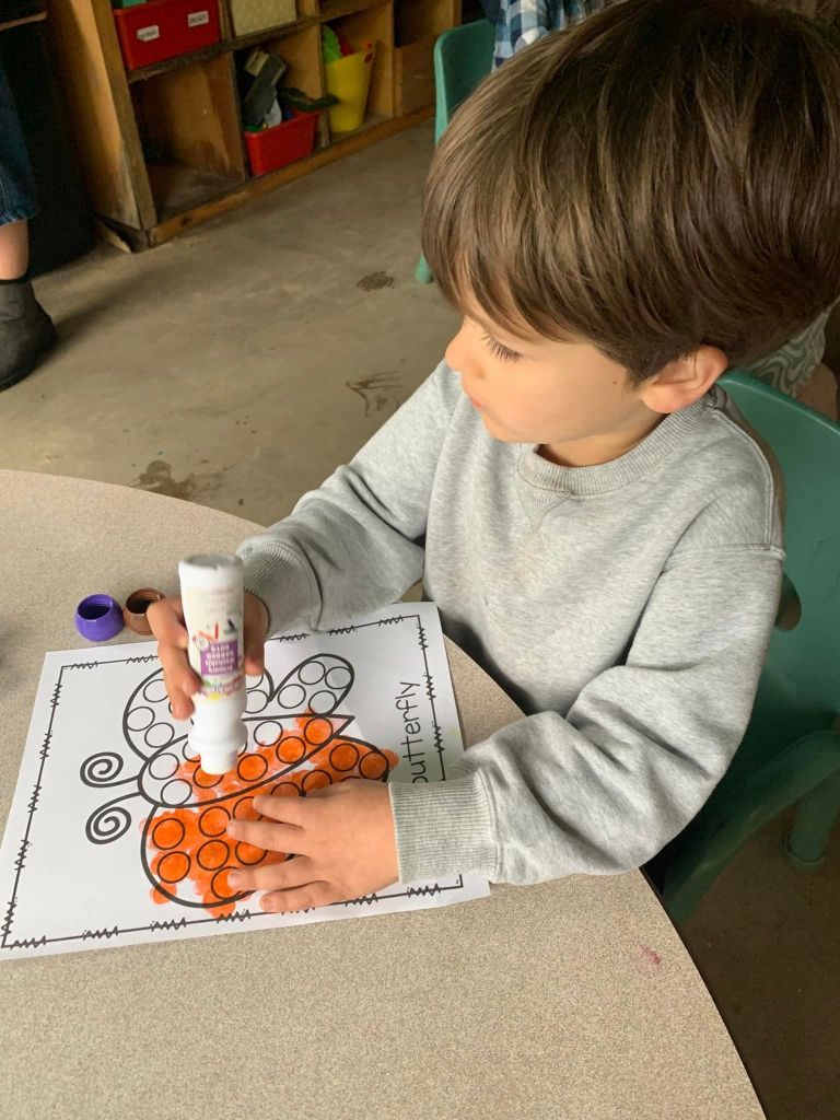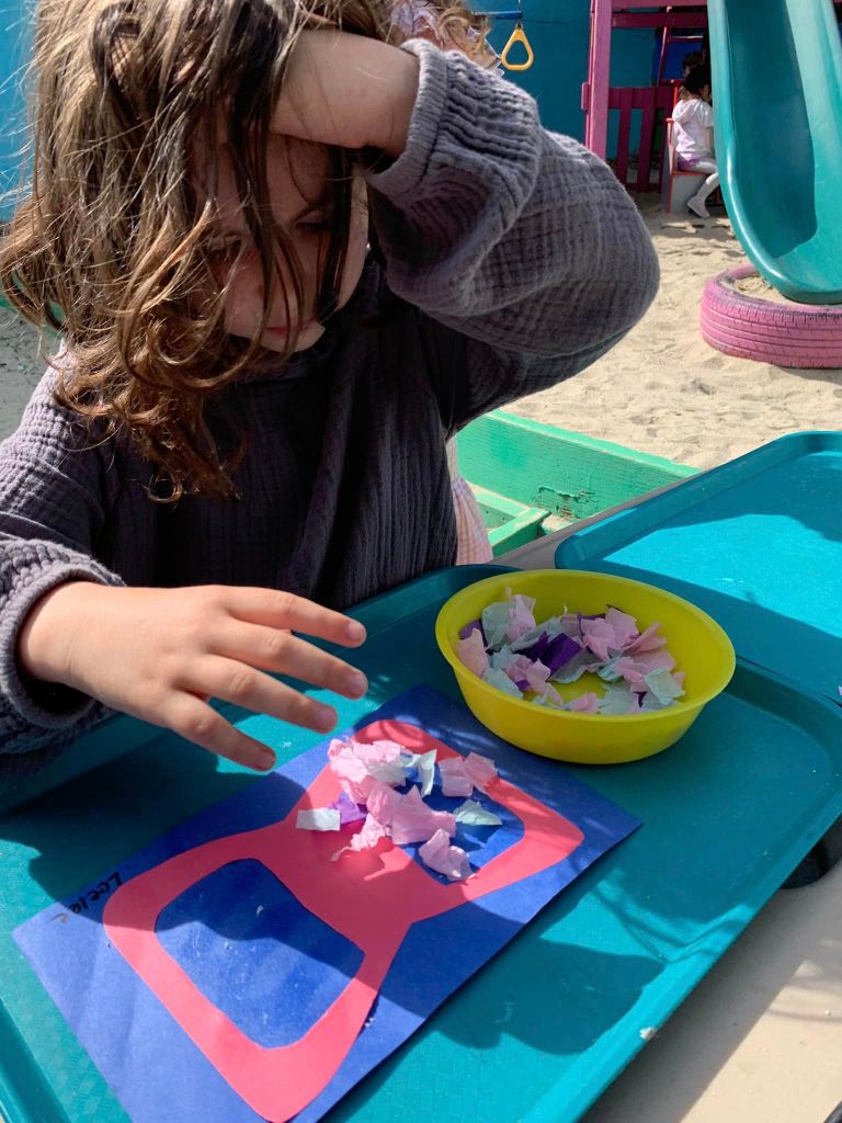 Students glued each “scale” (or tissue paper) to construction paper along with their friends!