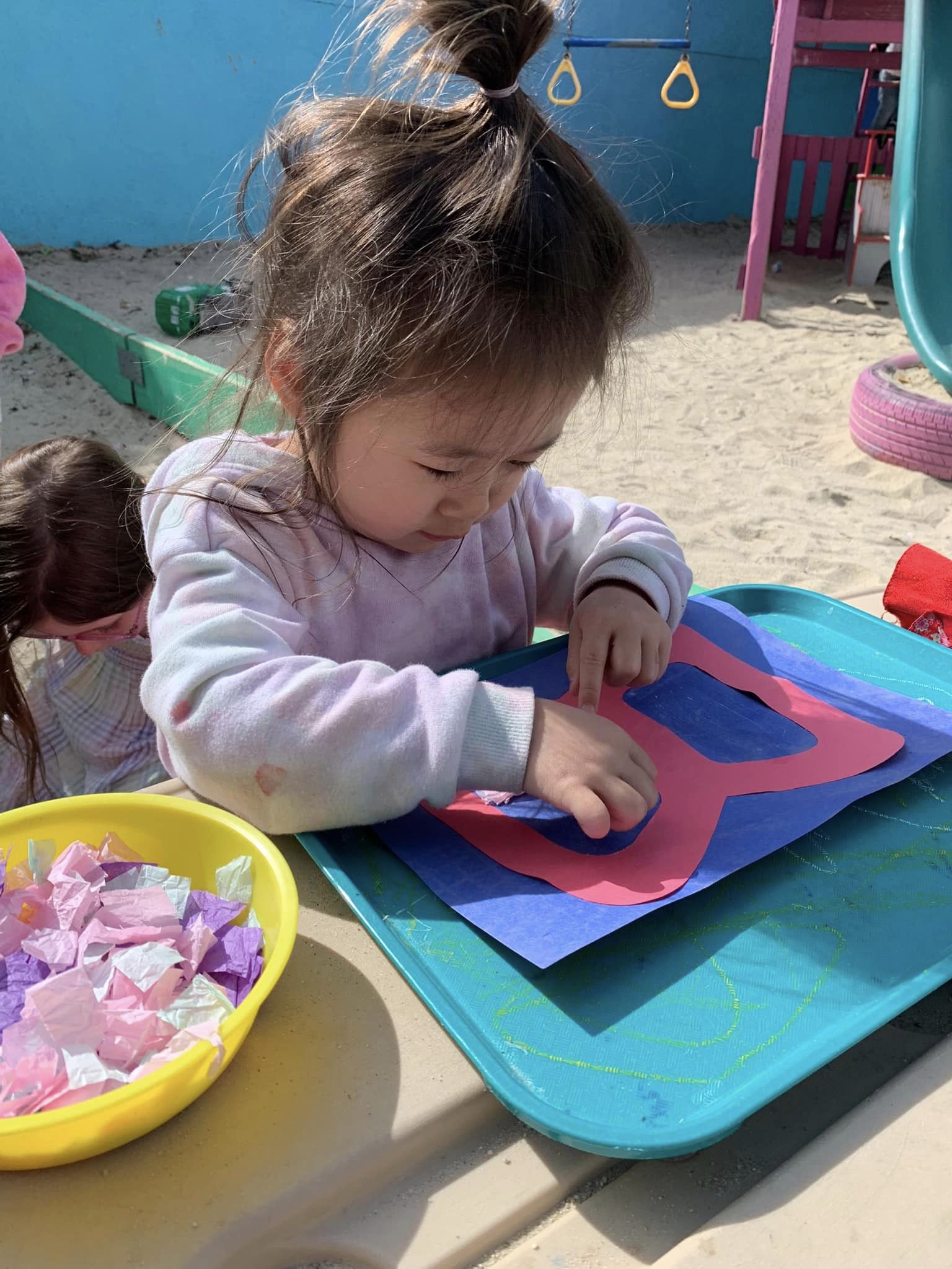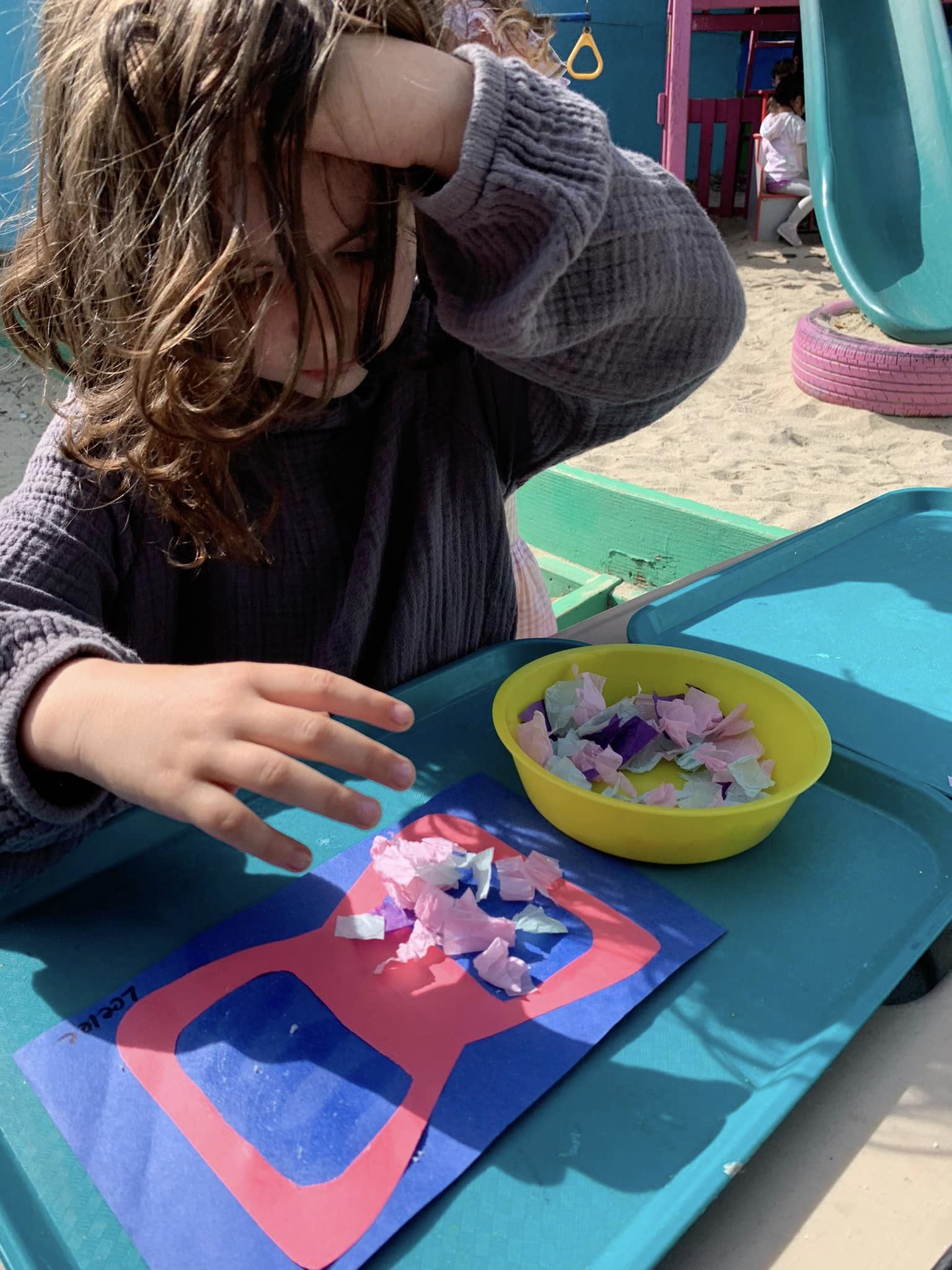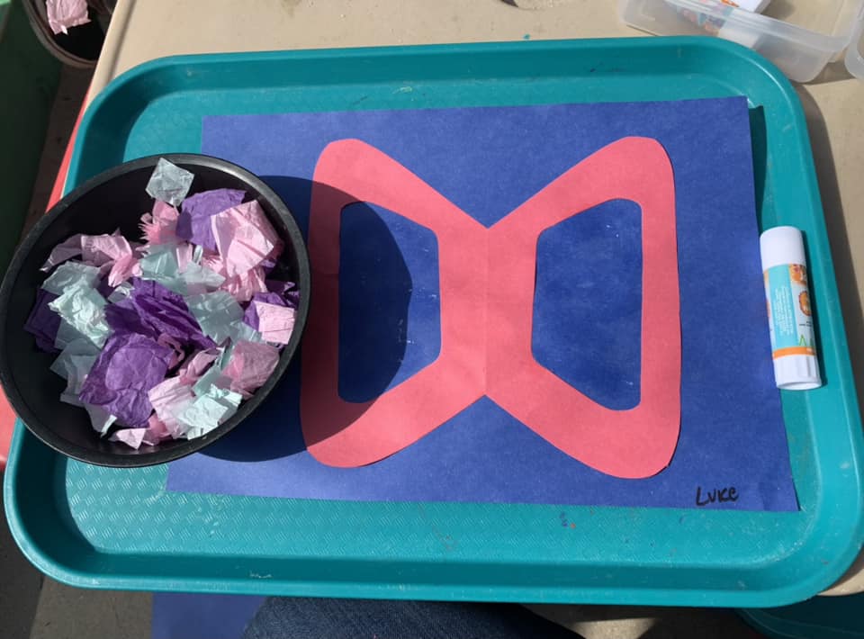 Students glued each “scale” (or tissue paper) to construction paper along with their friends!