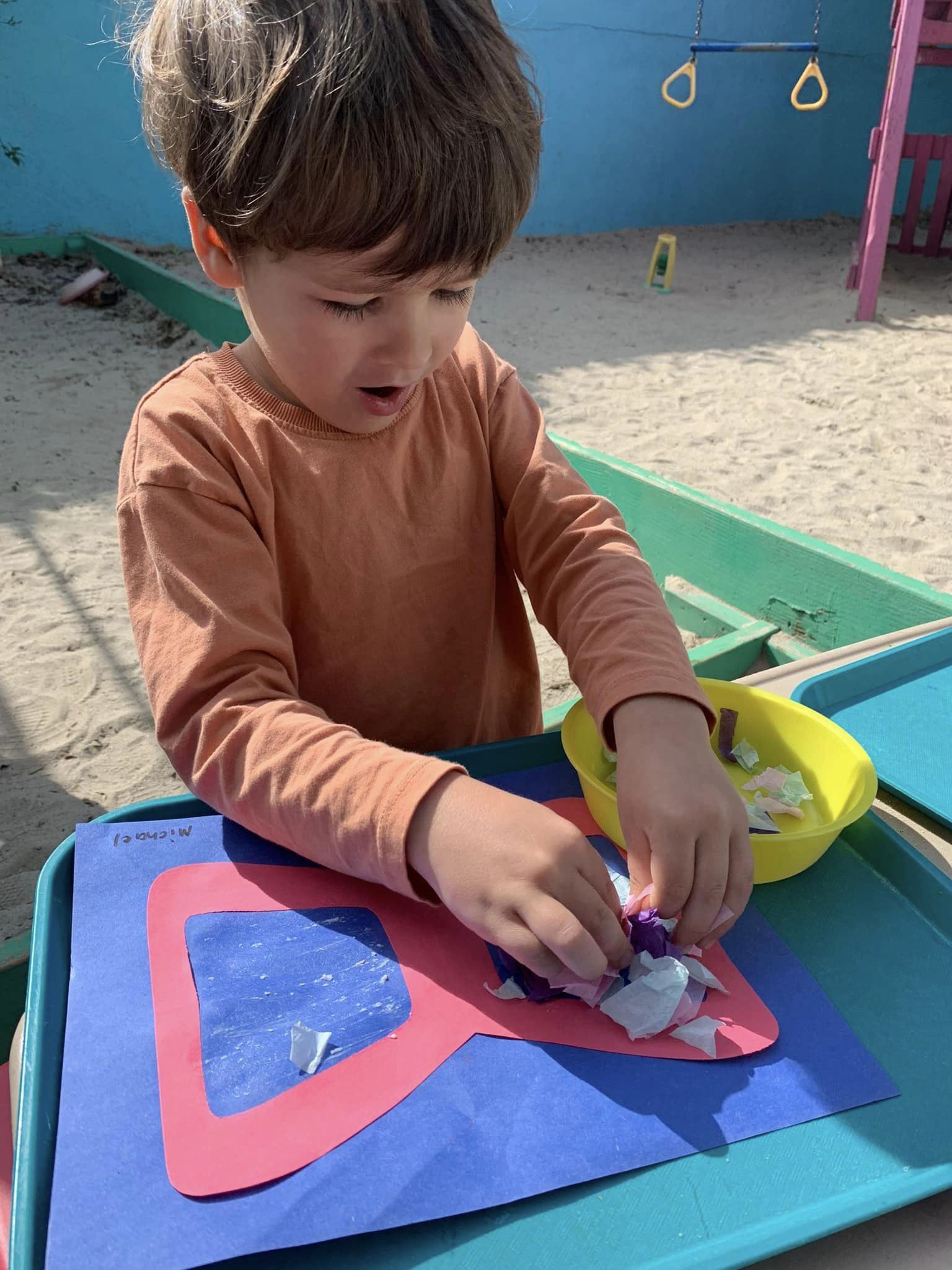 Thinking of the visual arts in early childhood education can initially evoke an image of a child standing at an easel, thick stubby paint brush in hand with bright acrylic poster paint spreading quickly across the page.