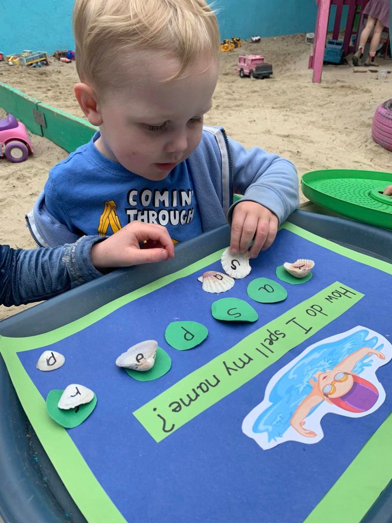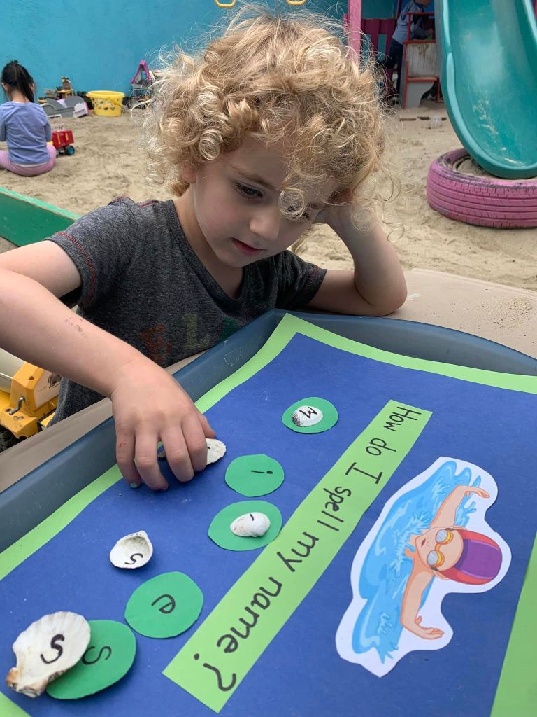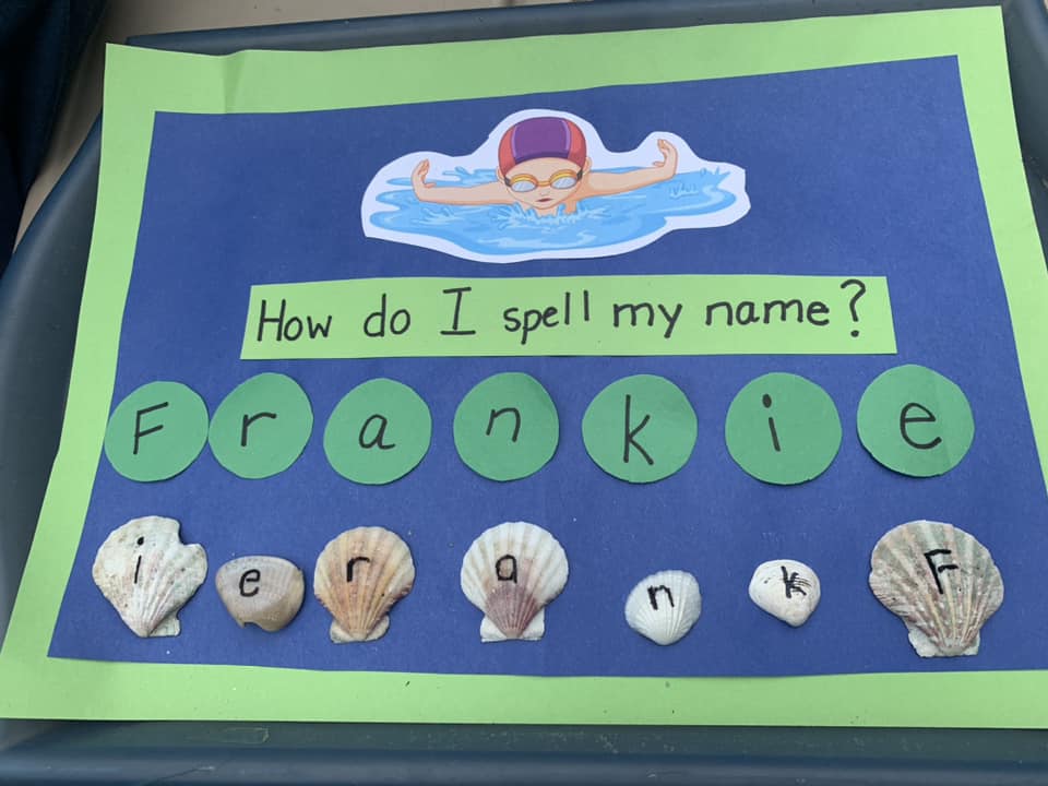 For this activity, we used seashells to play a fun matching game with the letters in our name.