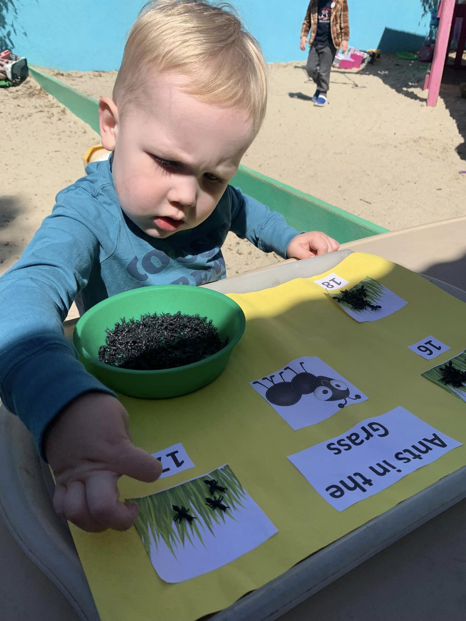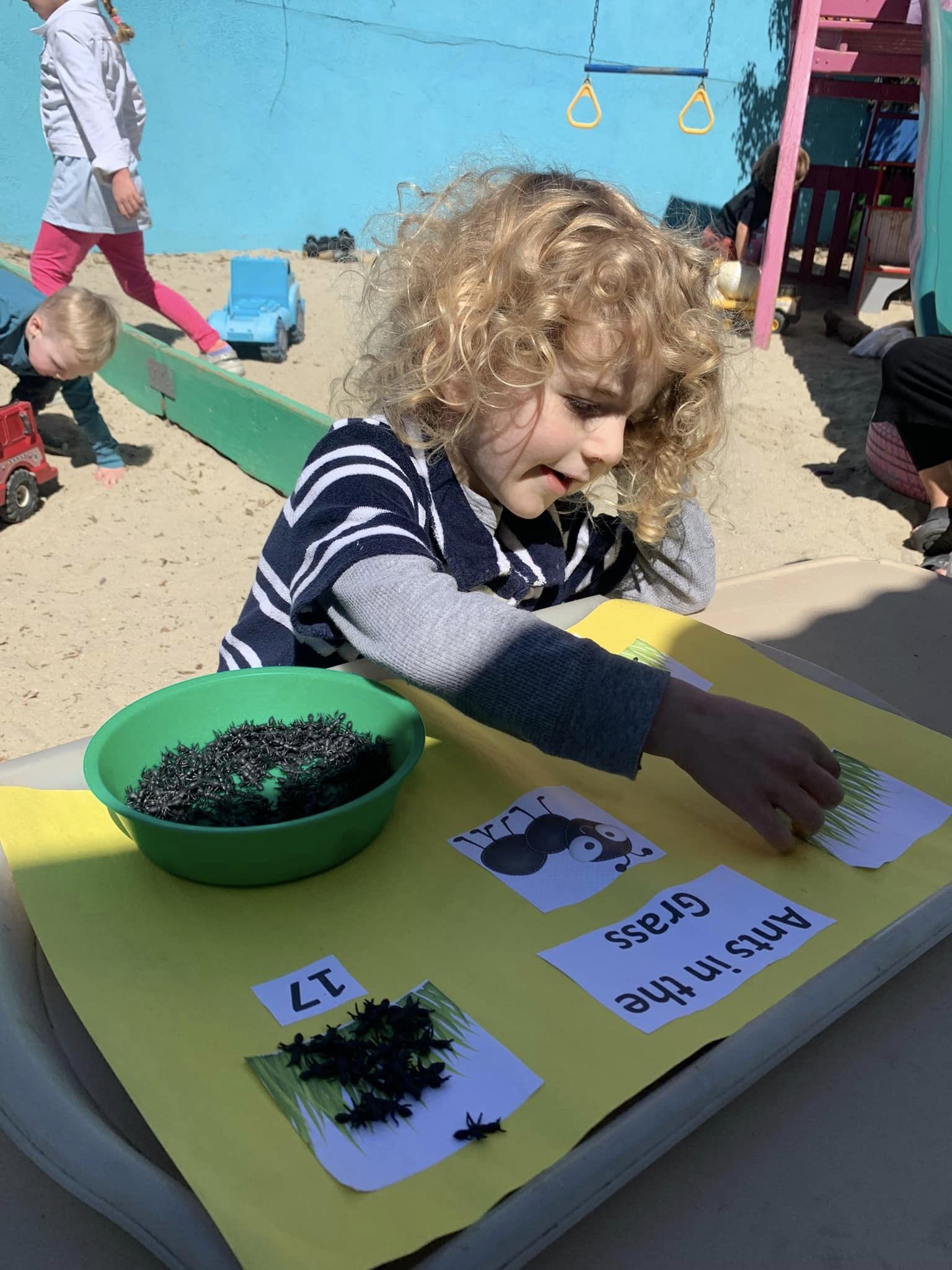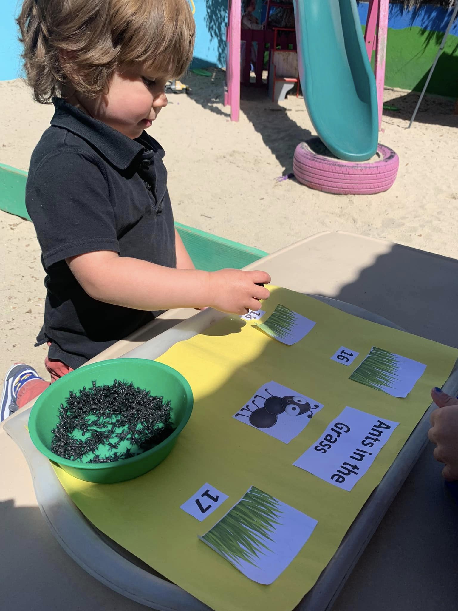 To begin with, we talked about what an insect is. Students learned that one thing that makes insects different from other bugs, is the number of legs they have. They were told that ants, like other insects, have six legs. Your little one also learned about what an antenna is. Within the ant colony, these antenna are used to communicate. Following a brief discussion, students created their own ants with play dough, black pipe cleaners, and googly eyes!