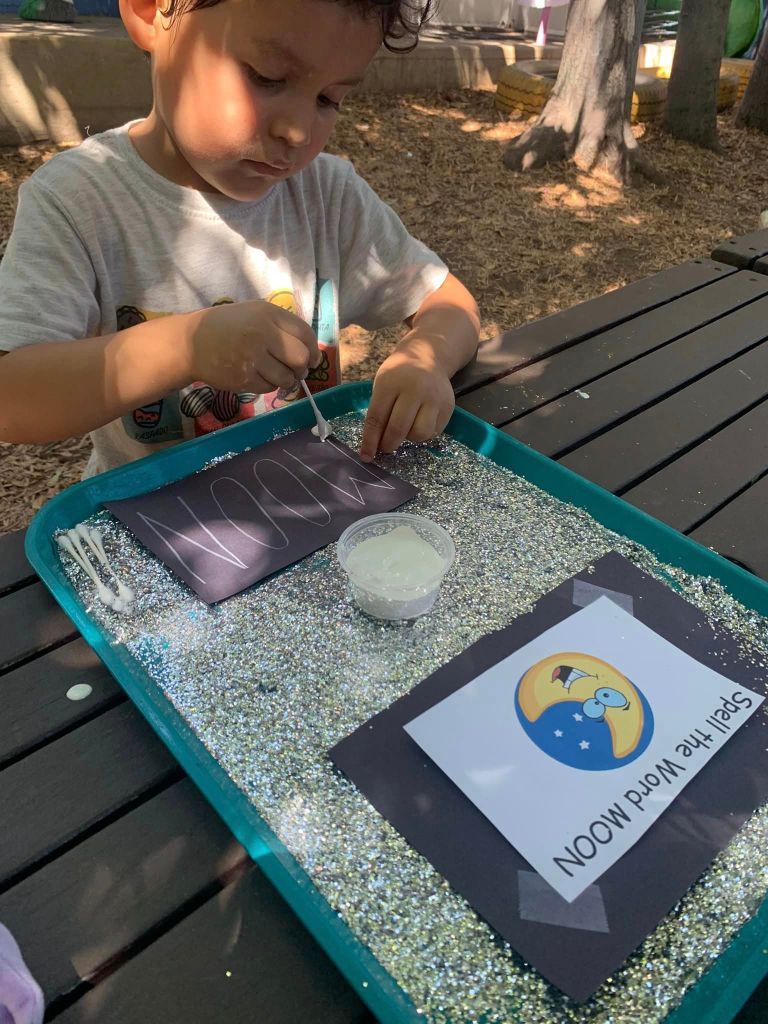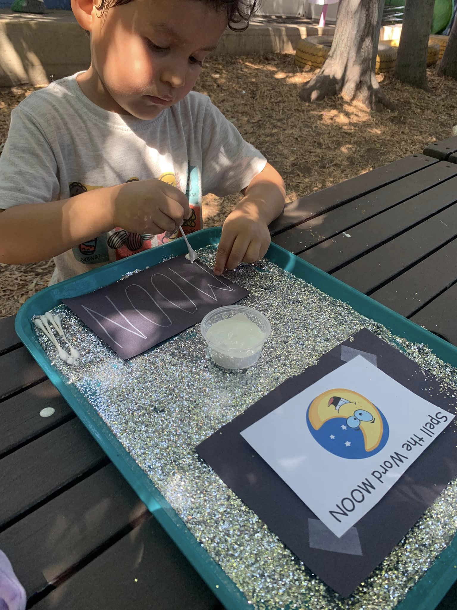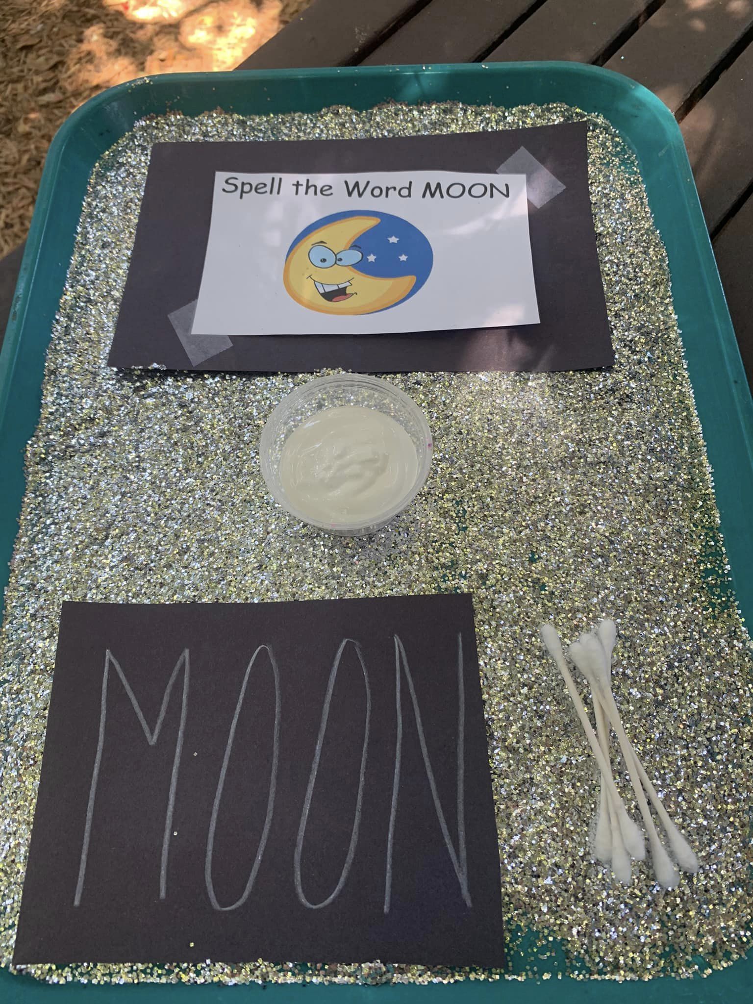 For this activity, we used Q-tips and paint to write on the moon!