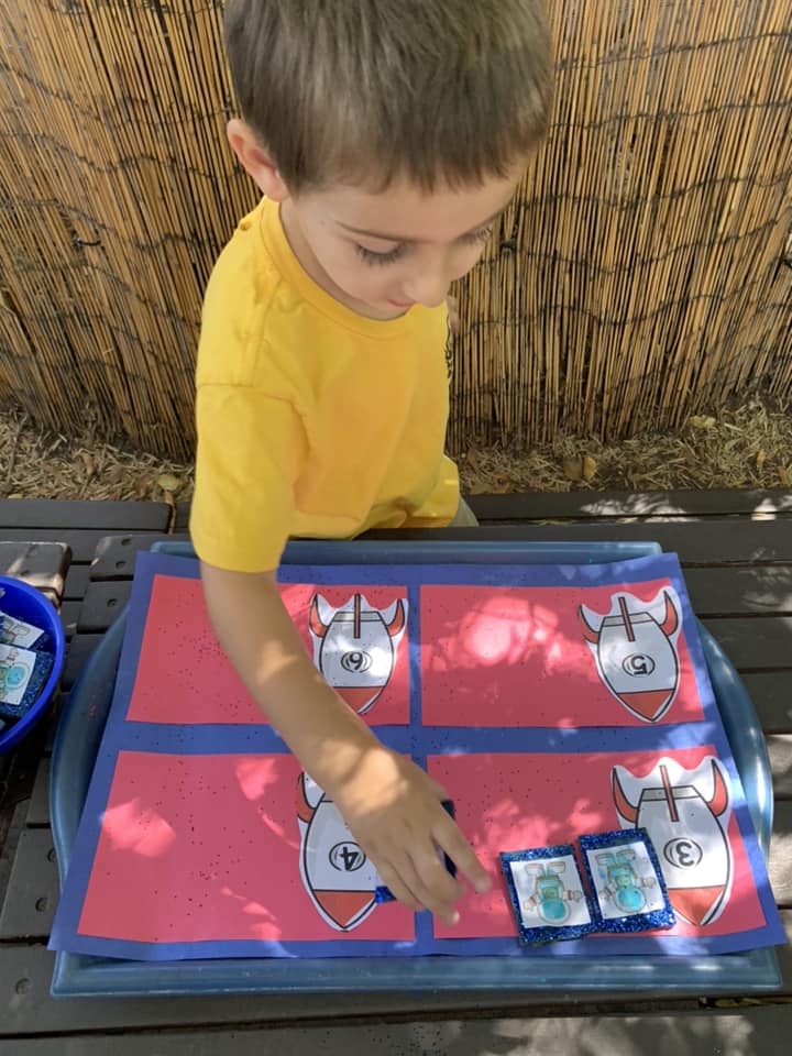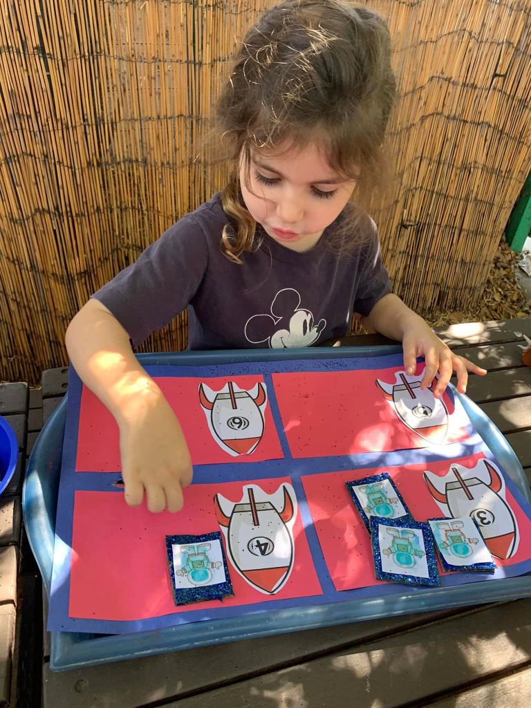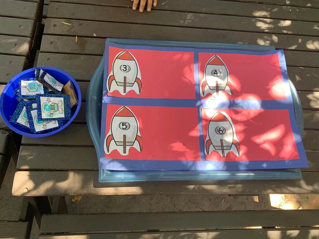They then placed different numbers onto rocketships affixed with the corresponding symbol.