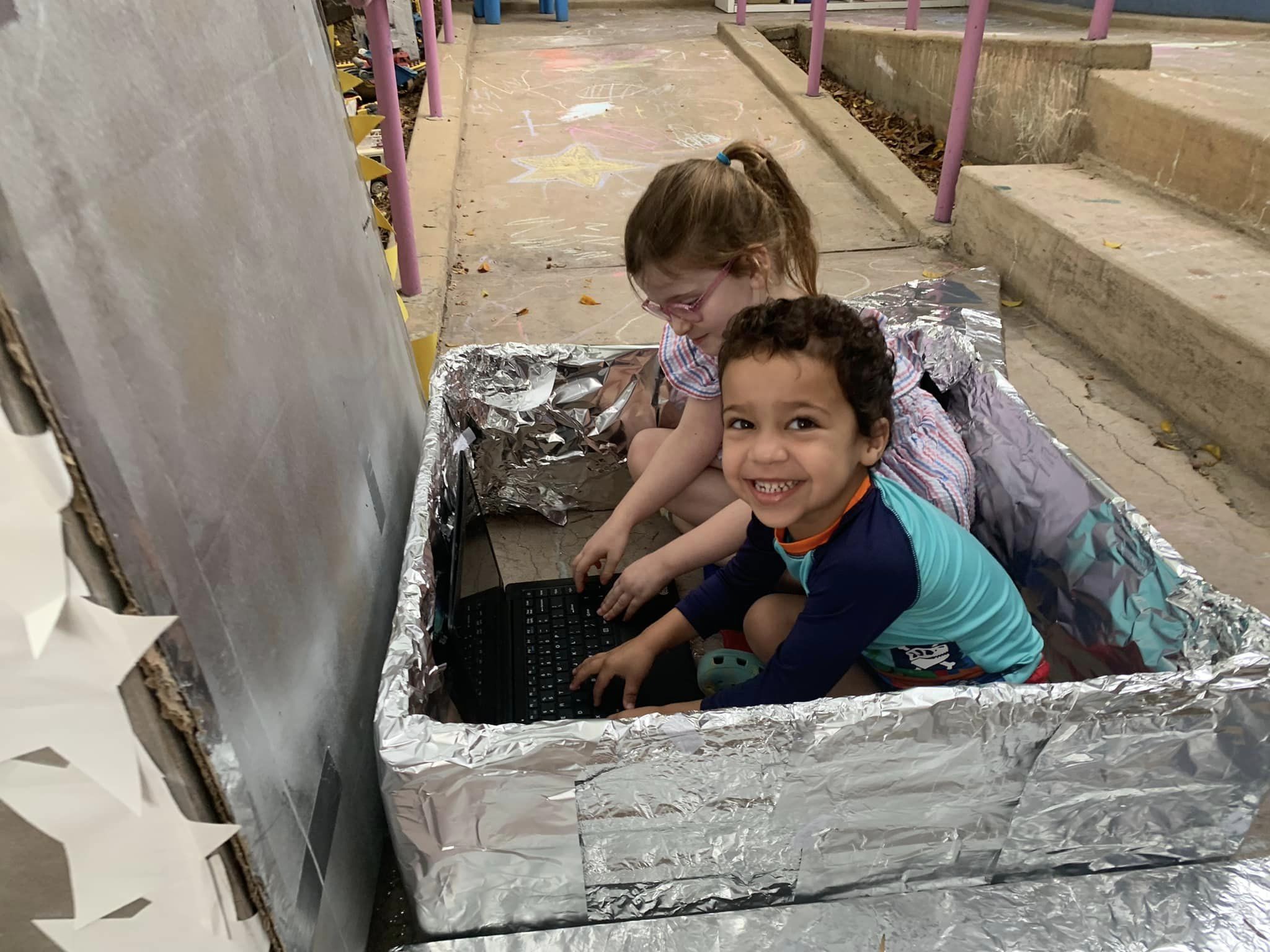 For this activity, students participated in a dramatic play activity where they (along with their friends) “flew” to the Kuiper Belt! Different students played different roles. Some were the passengers, some steered the rocket, some were the engineers, and some were the engine or “fire”.