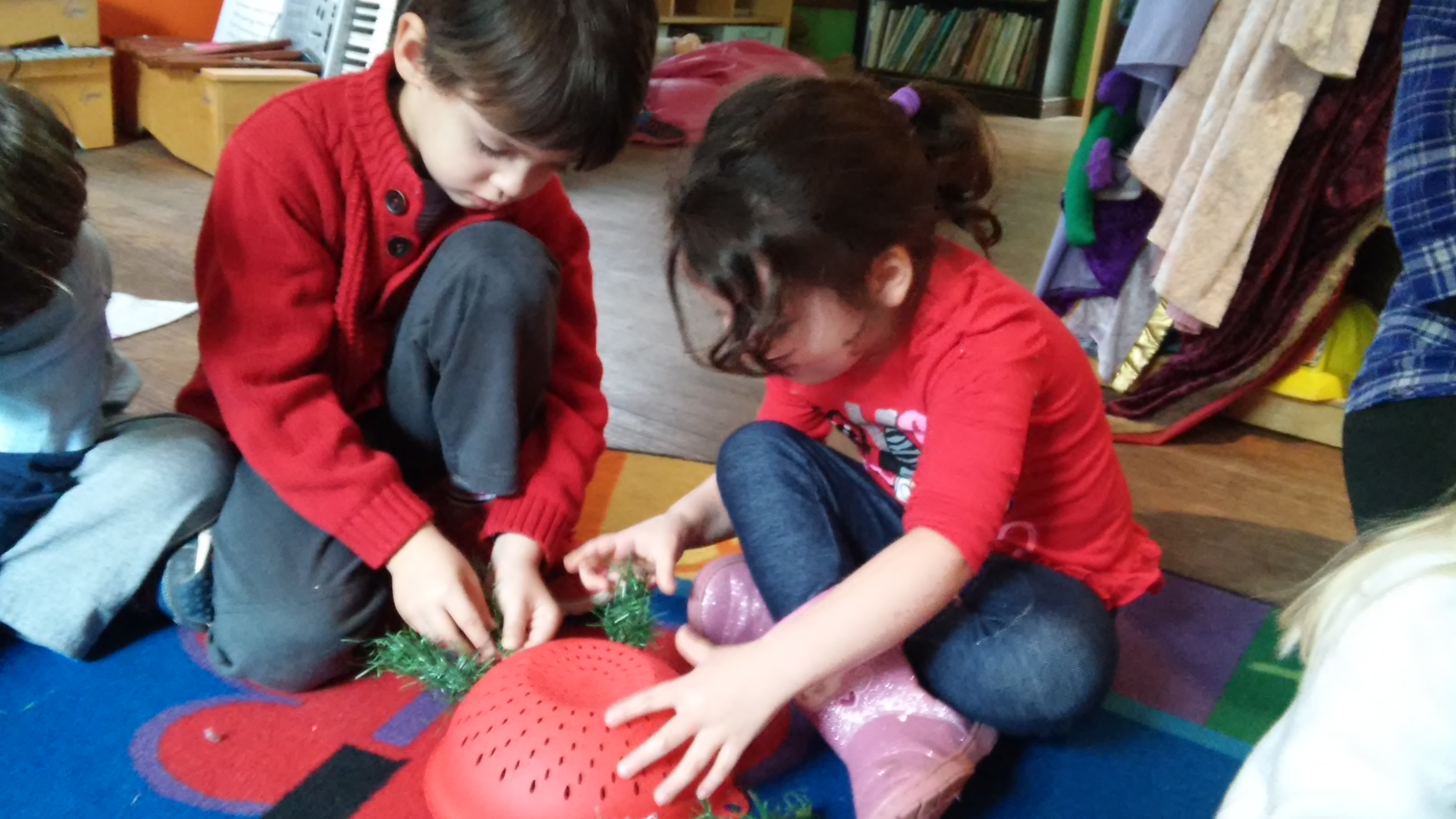 As part of our Christmas week, we constructed our very own version of Santa’s Village! Students used a variety of sensory materials to accomplish this. The figures utilized were one Santa and three elves made out of blocks. There were also polar bears and even a narwal that landed themselves in our village! In addition to this, we constructed log cabins out of Lincoln Logs and made it snow with flour!