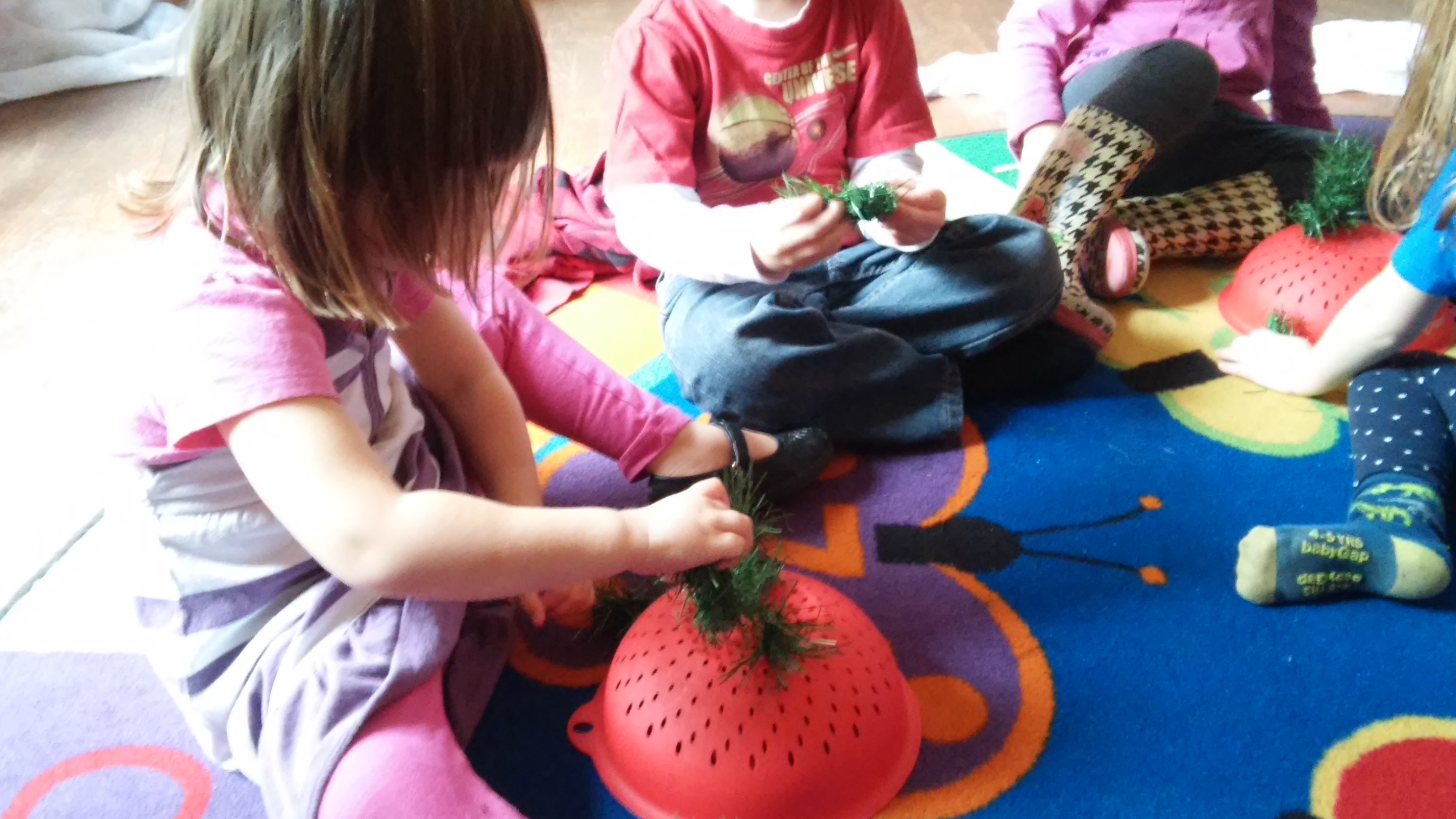 There are always many problems to solve in small worlds (“Not all the dinosaurs fit in my cave!”) and children learn how to work through these by reasoning and experimenting. Small world play helps to develop numeracy by giving lots of opportunities for grouping or sorting items and counting them (“How may small dinosaurs do you have? How many do go in your cave?” “Now, how many are left?”) Small world play is great for building language because it allows children to practice their language in a meaningful context. While playing, children are vocalising and learning about nouns, verbs, adjectives and prepositions and so on (“parking the red truck next to the yellow tractor”).
