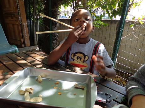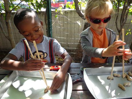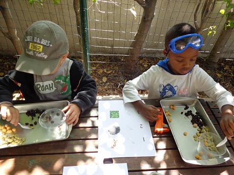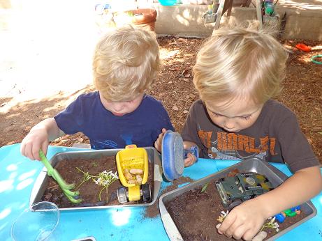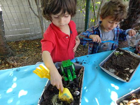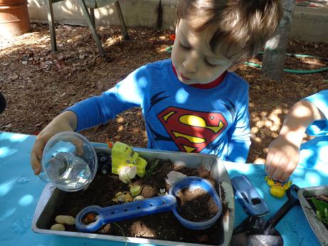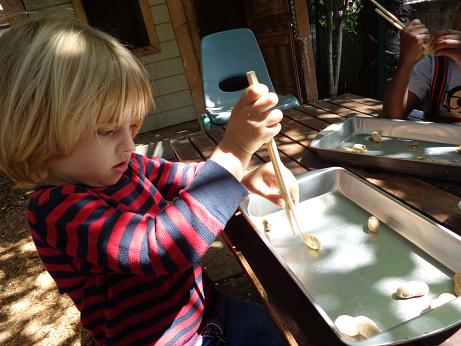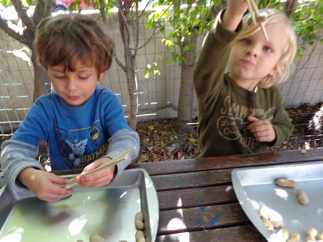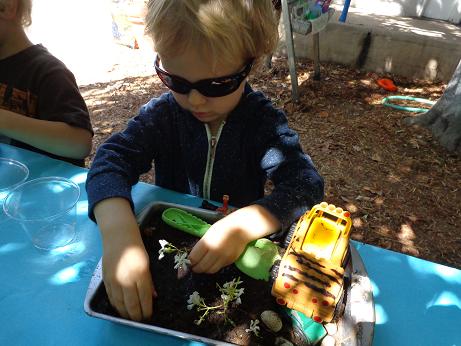 As part of our week of gardening, students used their visual-perceptual skills to bob for vegetables. Using their hands, they practiced retrieving toy vegetables from bowls of water with tongs.