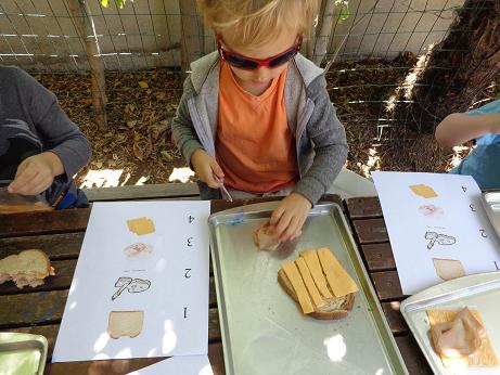 Each child would have a turn holding the bag that the bread would go into, while the other child added ingredients. Once finished, we put it into the toaster oven and then, into our tummies!