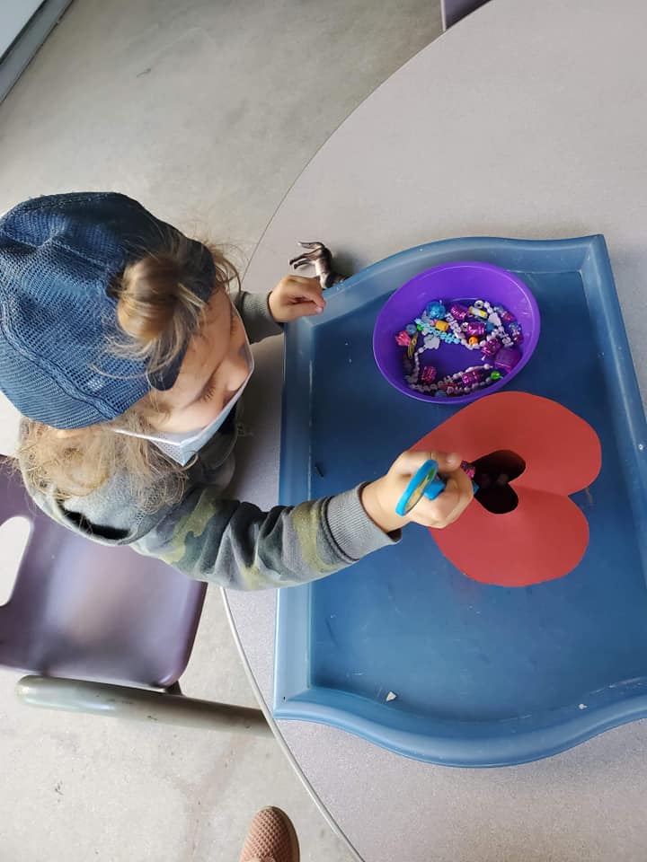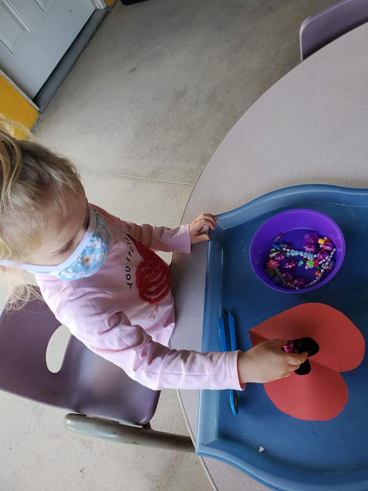 For this activity, we interacted with a variety of materials in this fun Heart Sensory Bin!