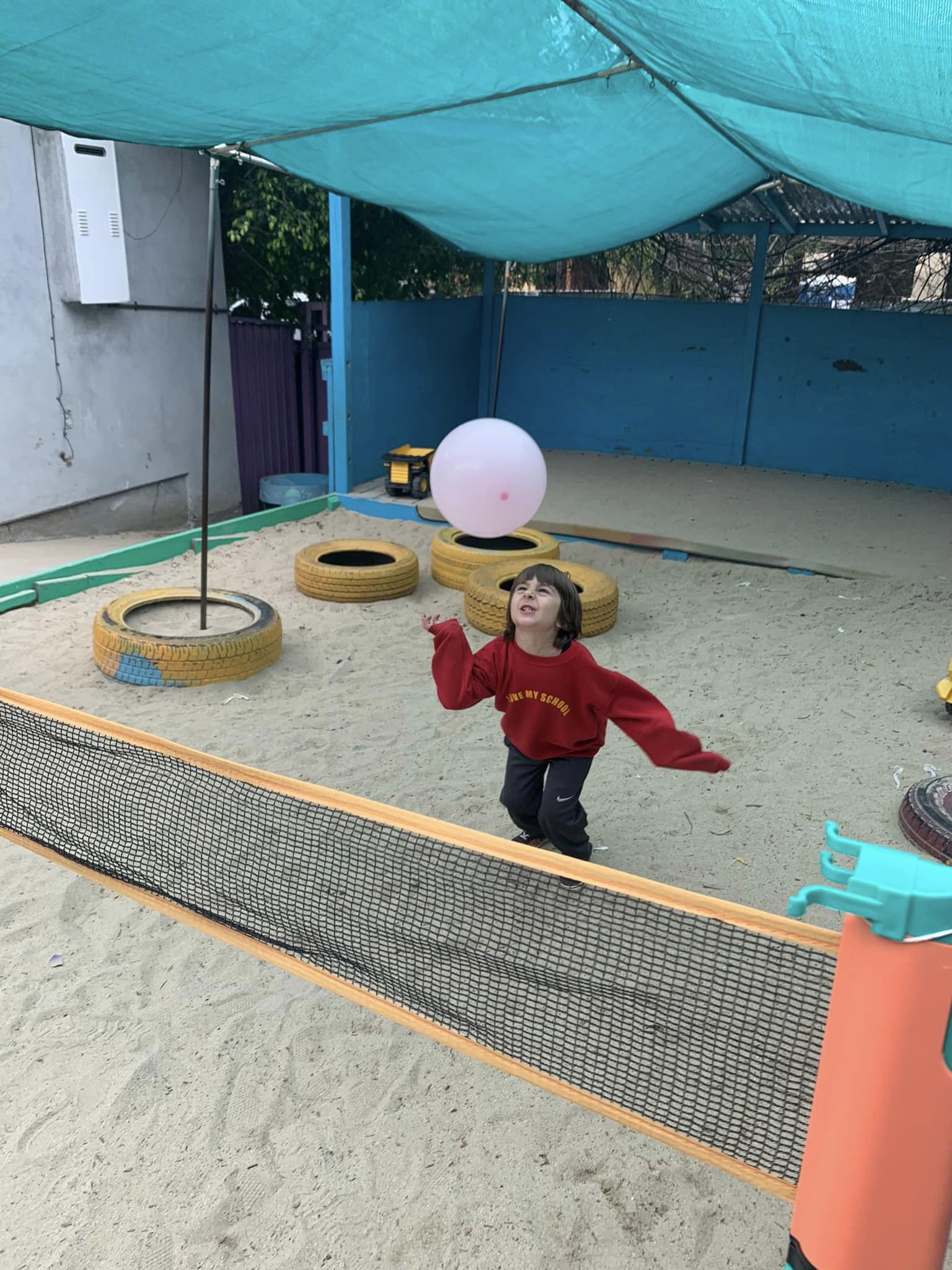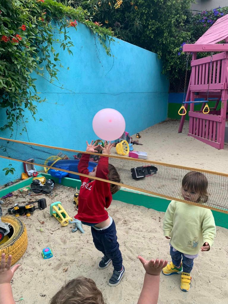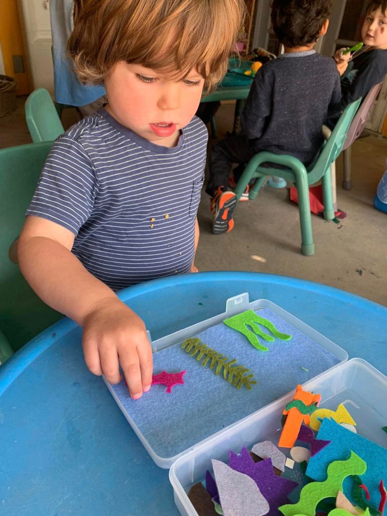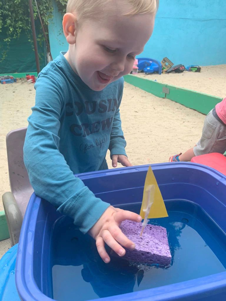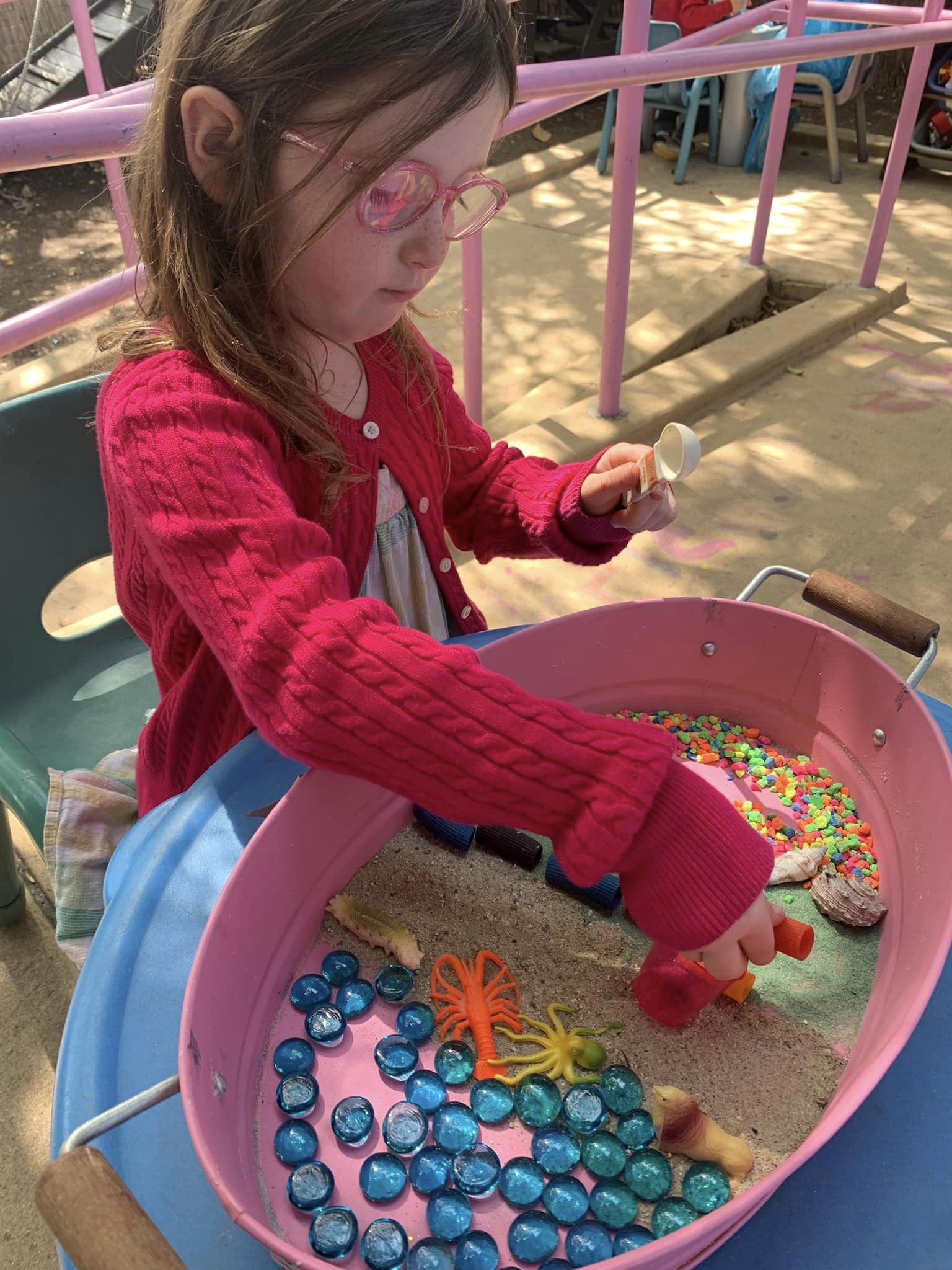 Because we don’t have a real swimming pool, we decided to create one using one of our water tables.