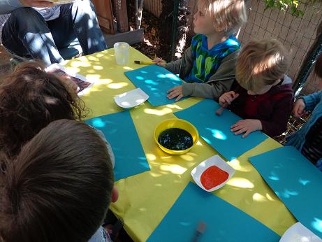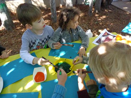 As a class, we brainstormed what our monsters might look like. How many eyes will they have? Will they have horns? Hair? Warts? What colors will they be? Each child was then given a pre-cut mask, and covered it in ovals. As a result, we learned that monsters do not have to be scary! By creating and proudly displaying their art, each student was able to access their own sense of individuality, self-respect, and an appreciation for others’ work.