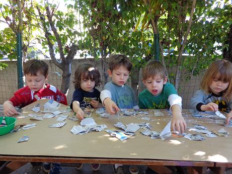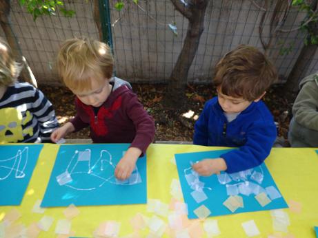 This activity also targeted specific fine motor skills, as your child glued and adhered pieces of paper to their creations. We introduced this activity by reading and discussing the book Go Away, Big Green Monster! by Ed Emberley. Following our discussion, students were informed that they would be creating their very own monsters.