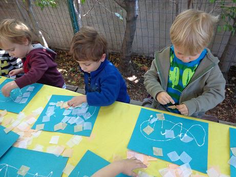 Art activities stimulate the preschool child’s imagination and creativity, aiding their physical and mental development. Research has shown that art activities develop brain capacity in early childhood. Art engages children’s senses in open-ended play and supports the development of cognitive, social-emotional, and multi-sensory skills. For this activity, we created monster masks. As your child explored the materials (glue, paper eyes, and paper ovals), it was noticeable how involved they got creating masks. They delighted in applying the glue themselves. This experience enabled them to build important life skills. While creating this mask, we focused on the letter M, and the many words that begin with it.