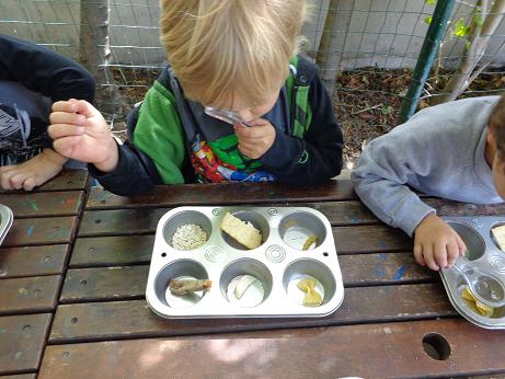 The breads and grains food group is diverse, and includes a bountiful selection of breads, pastas, cereal, and rice! This group is even further delineated into groups of whole grains and refined grains. Introducing the diversity of this exciting food group and comparing various items helps your budding foodie to make healthy choices. Through observation and documentation (recording what they see), your child is learning to make associations and differentiate between how things look and taste. Using magnifying glasses, we initially compared six different grain items (oats, rice, bow tie pasta, spiral pasta, bread, and a cracker), discussed how they compared and contrasted (These are smooth. These are soft. These are curly.), and then recorded what we saw!